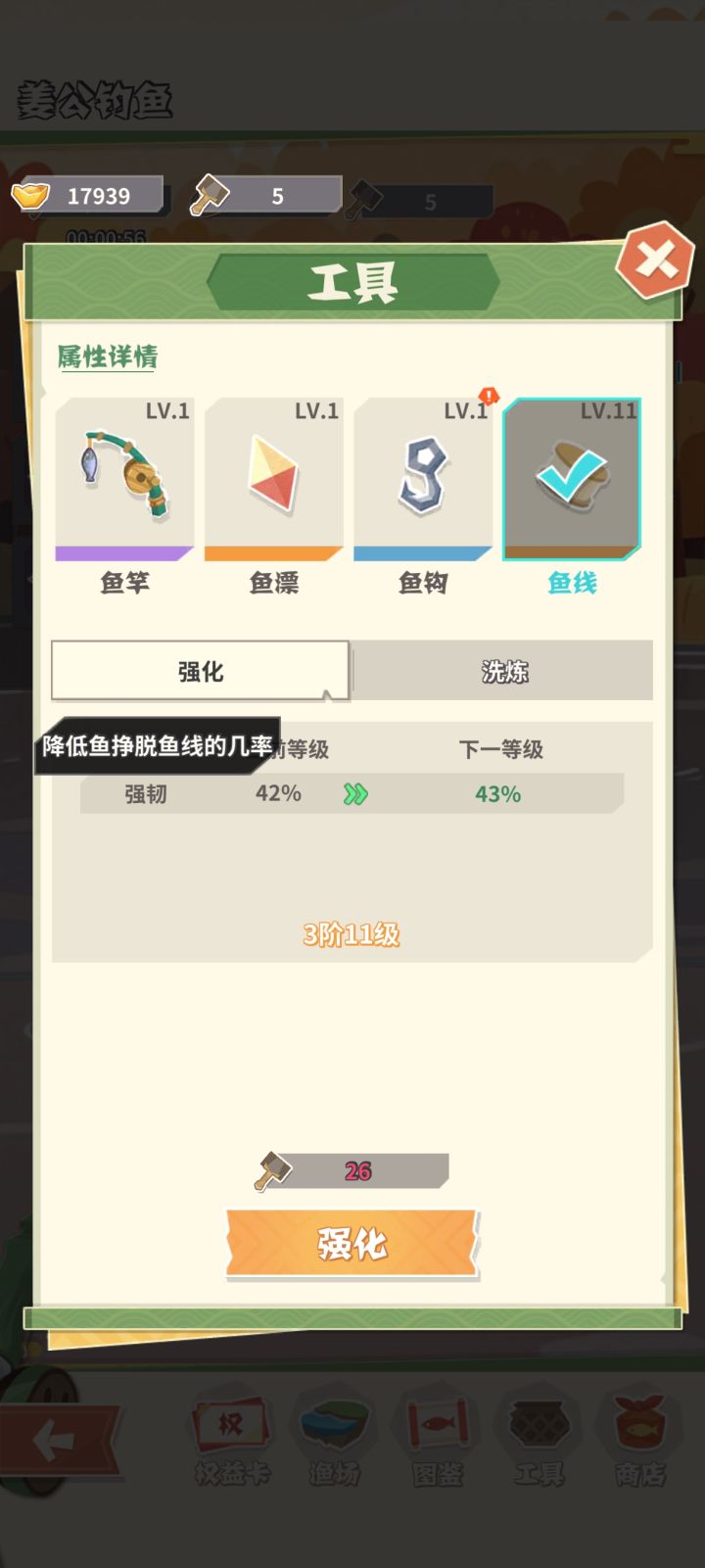 #勇敢幻想全民晒图 #勇敢幻想梗图大赛 为什么推荐优先升鱼线呢?仔细看了每次钓鱼都有鱼获,没见过失败的啊