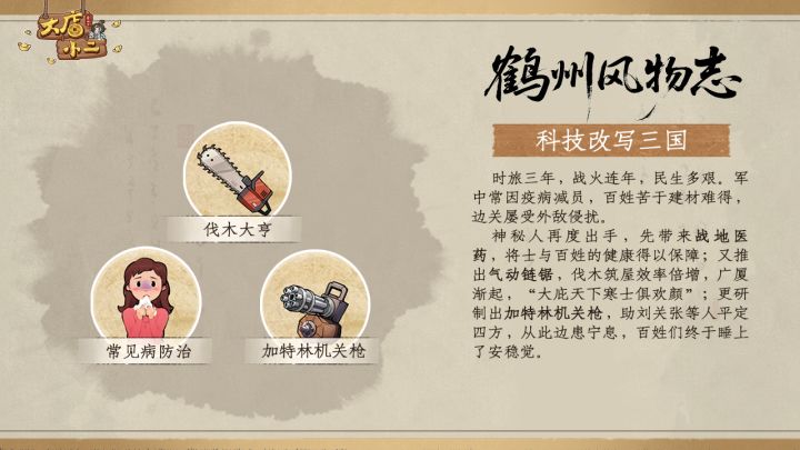 各位时旅者好呀~时空穿梭机再次启航!抵达目的地——三国时期军中疫病流行,百姓居无定所,边关还时常传来外敌侵扰的消息……可真是不容易呀!都说乱世出英雄,但这一次改写历史的,还有来自未来的科技之光!如果穿越回三国时代,时旅者们还想带来什么神奇科技或有趣发明?在评论区告诉小昭吧!#今天游戏圈发生了啥 #大店小二 #发现好游戏