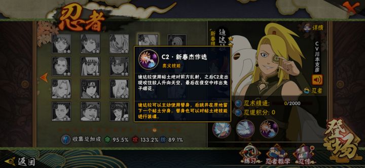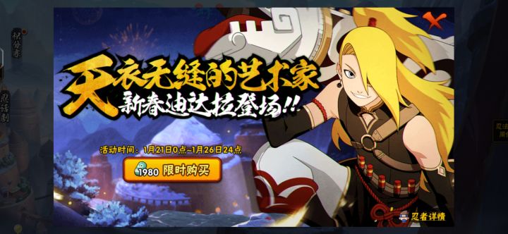 火影忍者手游:充能机制限制了新春迪达拉,攻略自取!新春迪达拉已经上线好久了,强度方面感觉比较一般,手感方面还不如老A忍迪达拉,新春迪达拉普攻是近距离攻击,技能是远距离攻击,总感觉有些怪怪的,至于这个忍者要不要入手,就看个人了,下面看看新春迪达拉的技能普攻机制吧。首先就是普攻,新春迪达拉的前2a都是平推效果,第3a是击飞效果,4a斜向前开炮,5a骑着鸟突进,可转向,新春迪达拉的普攻整体普攻后摇比