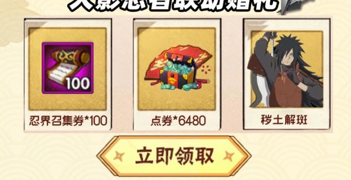 礼包包含高招券*100 点券6480 秽土解斑碎片随机这波我直呼良心,错过损失一个亿#火影忍者手游