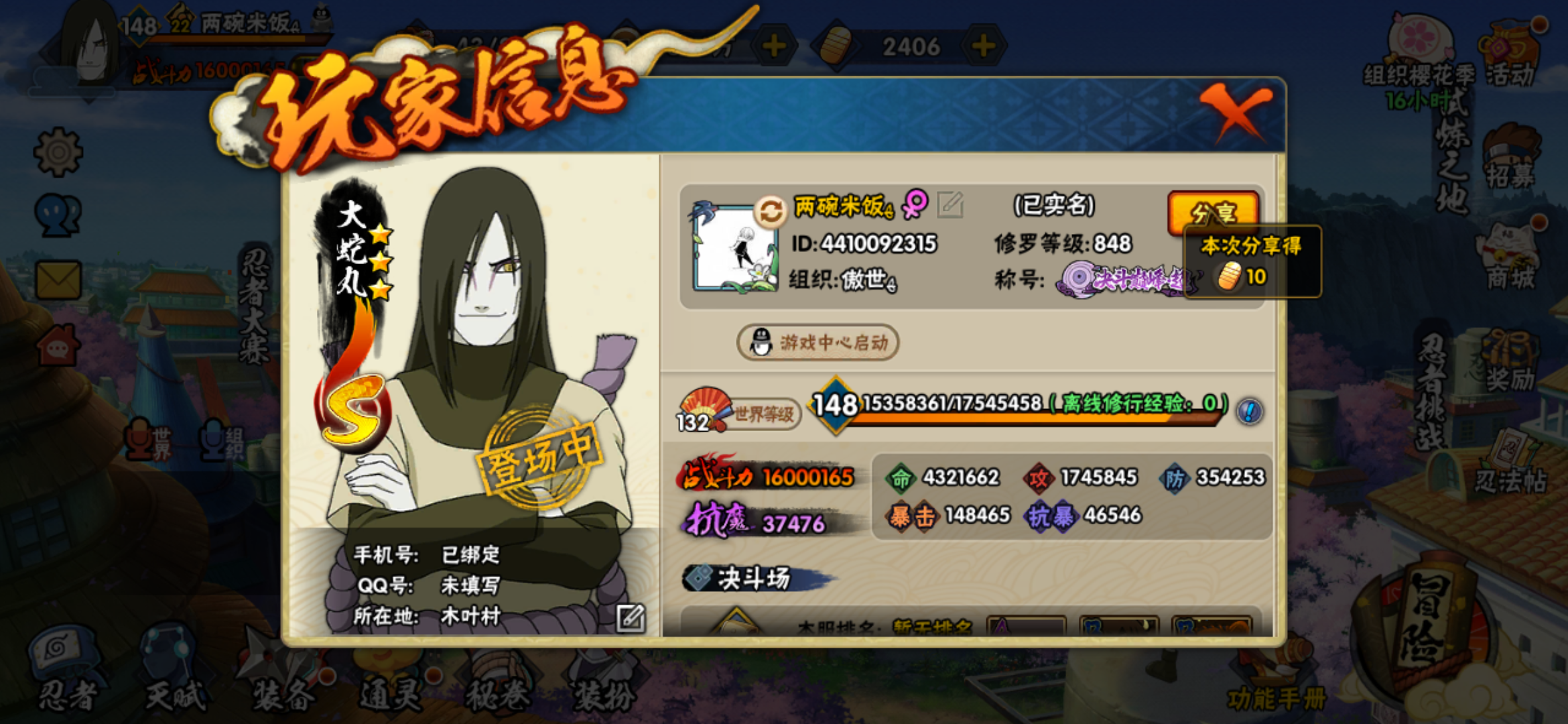 火影1500w小号 最近没怎么玩 换个吃鸡号玩玩,有人换嘛 就互换着玩 最近手痒想玩吃鸡😂