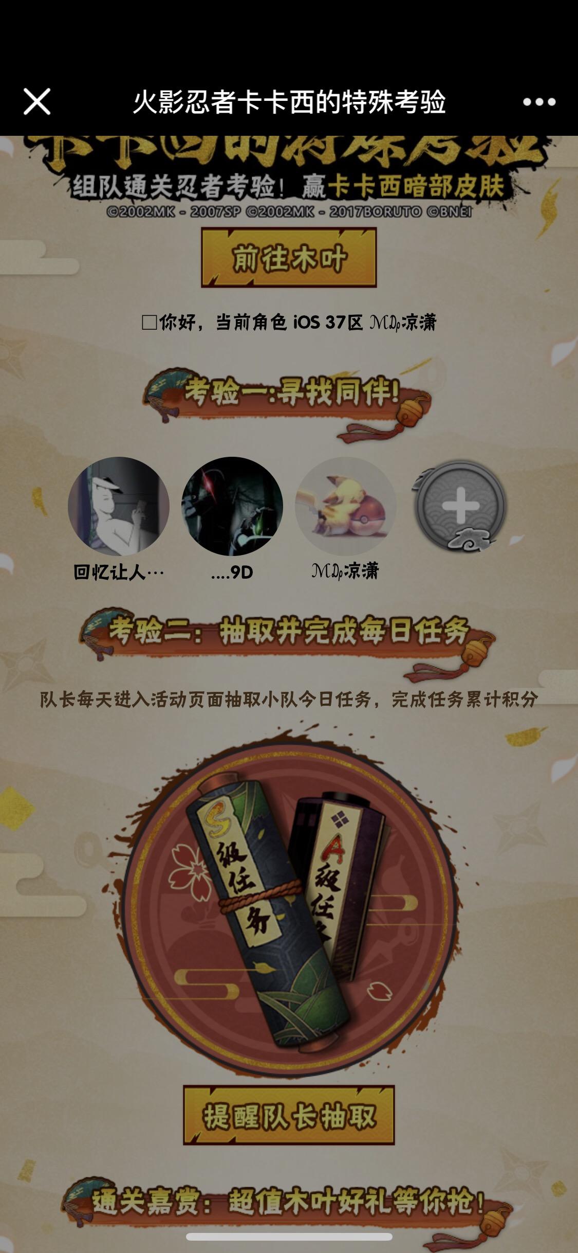有人没组队吗?那卡卡西的皮肤还没组队的加我562419676