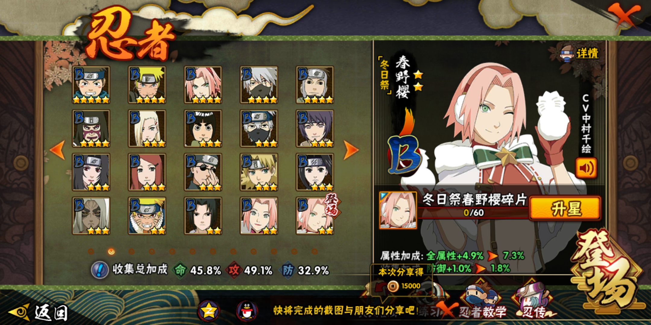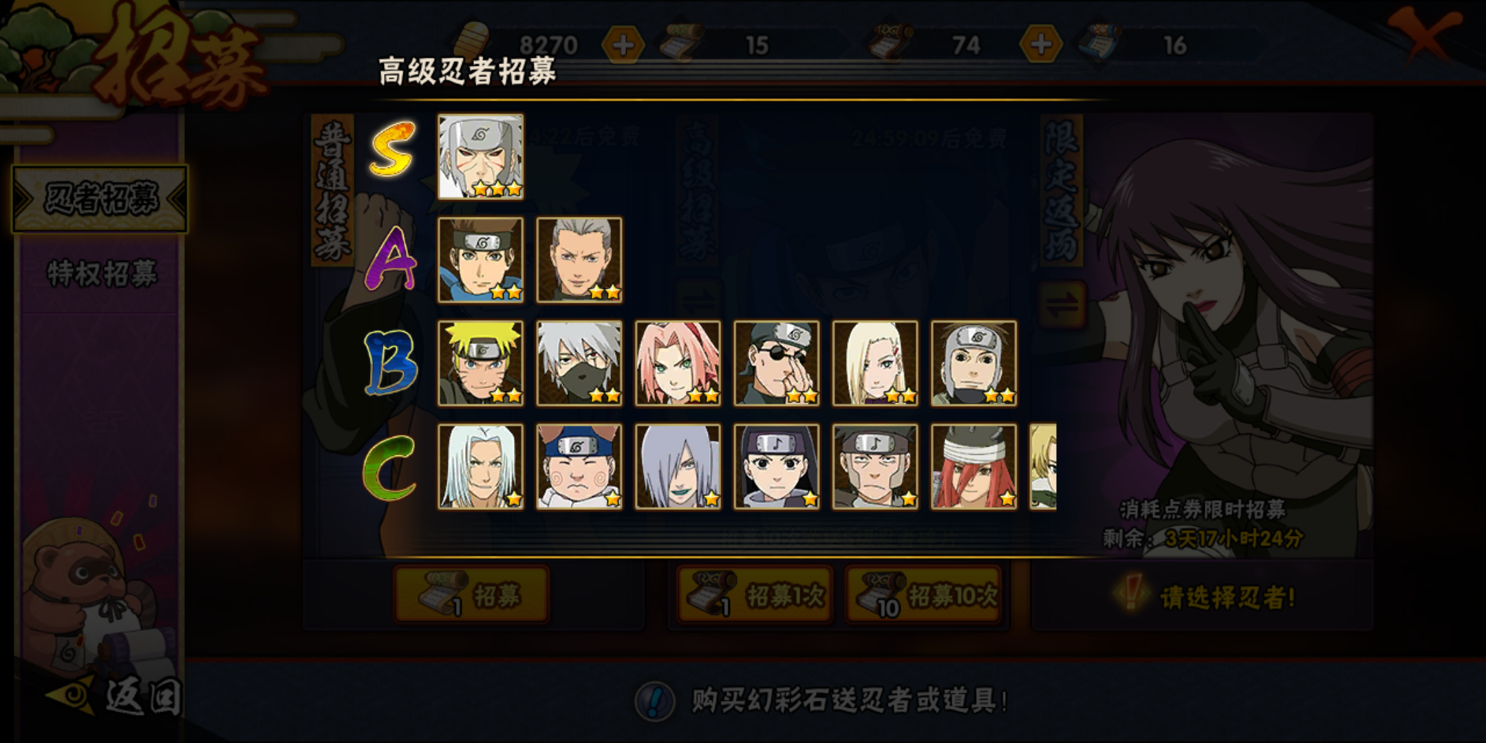 ios想换个有长门活二代柱间的号,A忍跟我差不多就行最好有忍战卡卡西暴走带土。号上大约还有80多抽,通灵熊猫二尾螃蟹蛞蝓全有v11