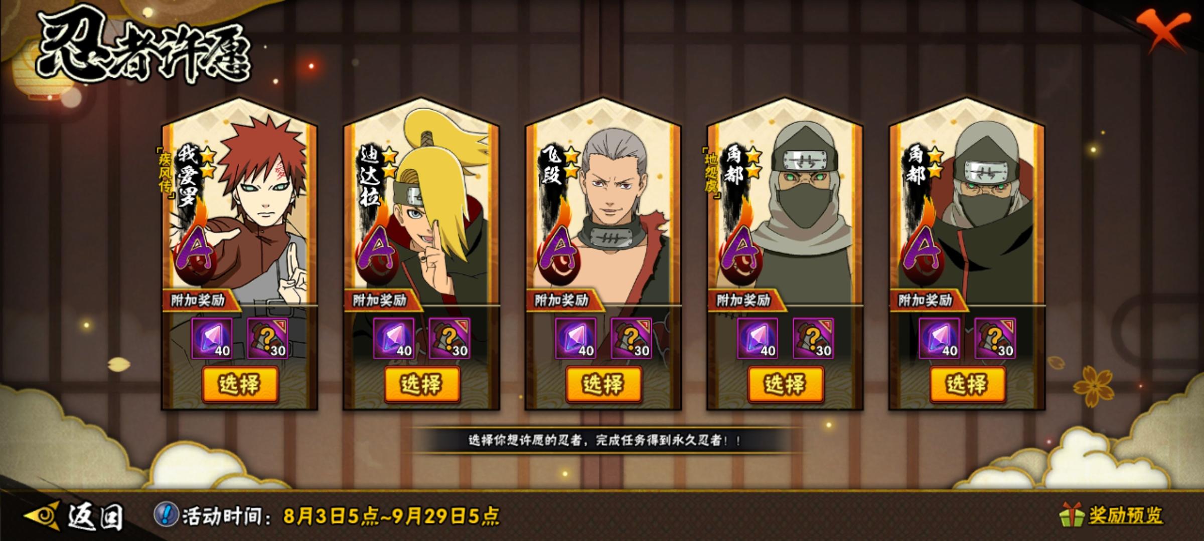 今天刚刚入坑火影,很多地方不懂得还请大家告诉我,话说那个新人的福利可以选一个a忍我该选哪个啊