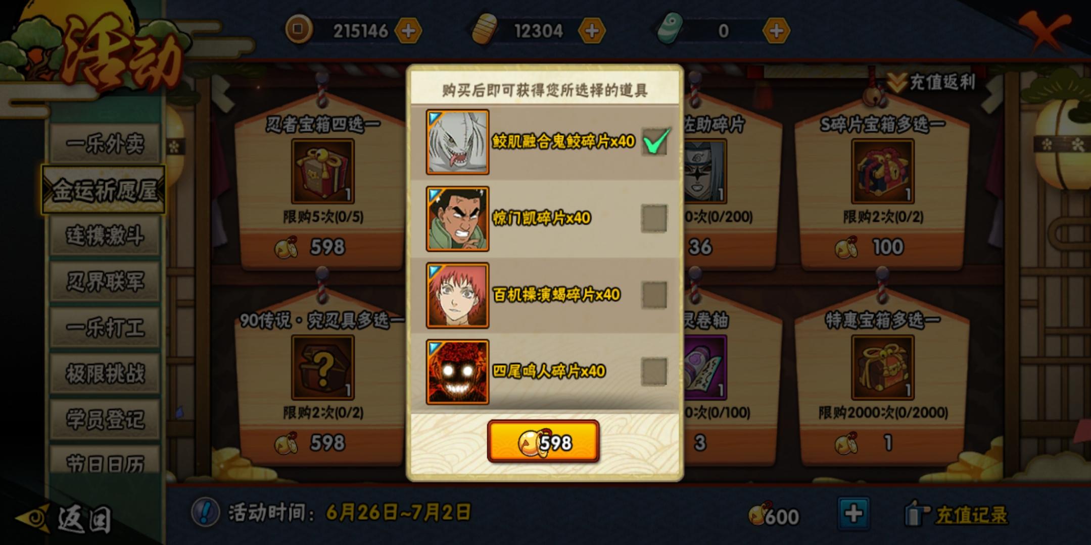 请问九月份是不是有那个幸运宝库(听人说的)如果有的话,那我就不要纲手了