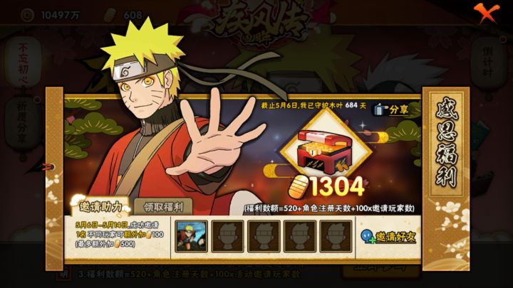火影5月份会上架的忍者和返场1.4月30日忍者联军,可以得小止水和忍者新秀小樱2.5月签到忍者,秽土胖虎,青,不知火玄间3.5月限定b忍有萝莉道,修罗道,新春井野4.5月1日上架许愿宝库,雷影,柱间,斑,300抽必出5.5月1日出决斗场忍者黄土,以后会上架金运祈愿屋,售价648元6.5月15日周年庆上架百豪纲手下架秽土水门7.雨有利可能也会在5月出,售价980点卷或1980金币,千代