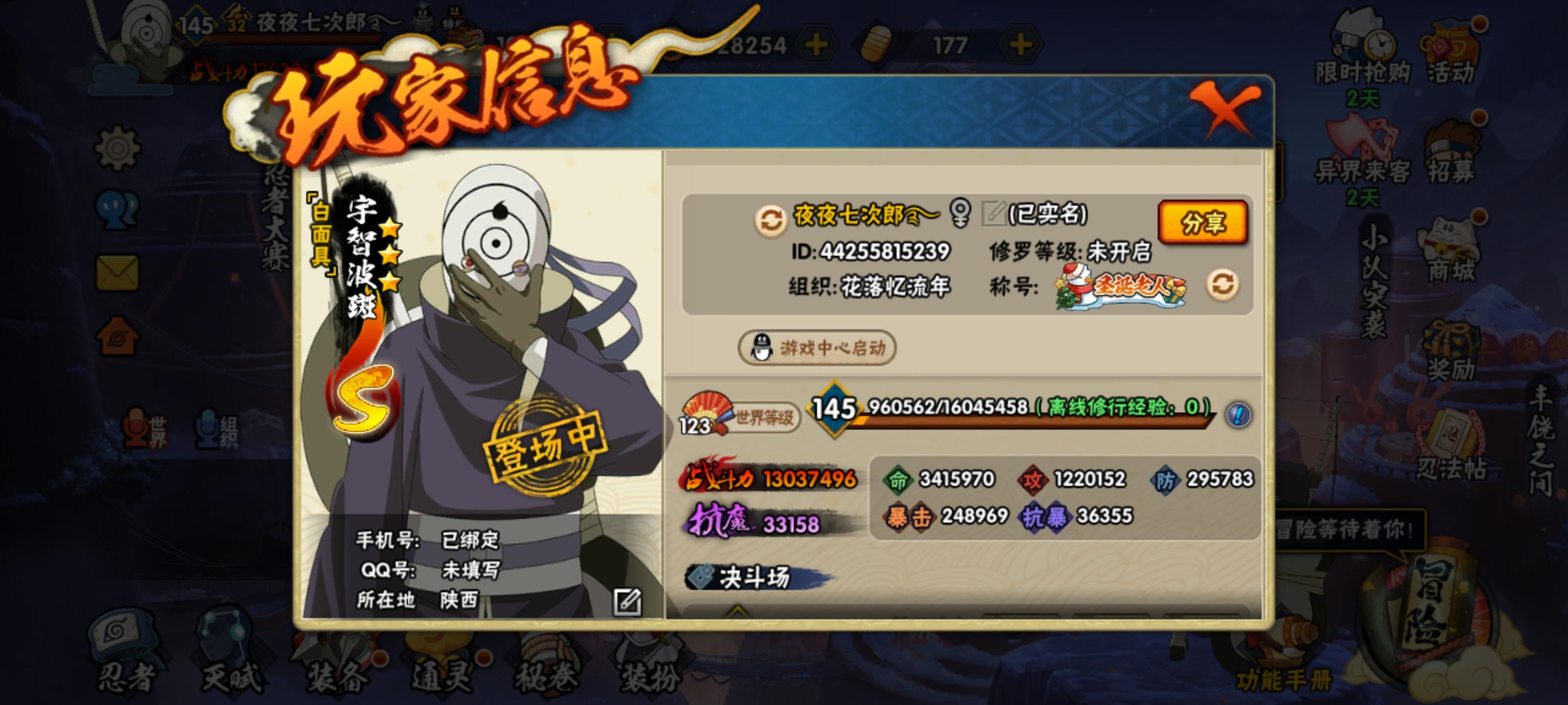 战力910w,金氏忍法帖买了25元档,还有九百多点券,46片老三代,罗砂94片,战力排行榜102名,榜二组织成员,v10#火影忍者手游