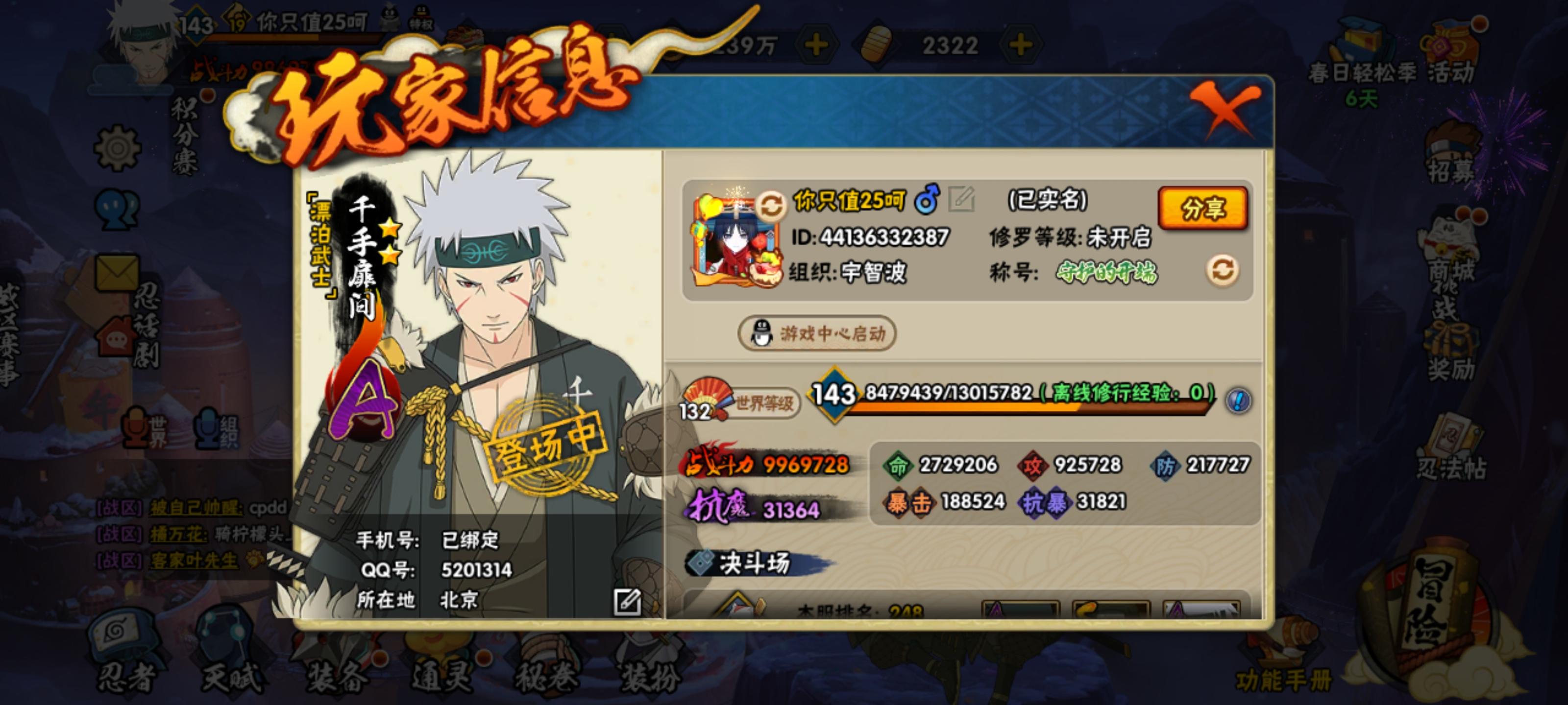 这是我的号截图 q区 207区(作为凭证)现在寻找一个好兄弟的高战力号 免费代玩 目的是帮助组织兄弟打究忍具 没有其他用途不费时间活跃 全部帮做有所需求 才更真诚请评论联系我或者联系q联系q:2547453771#杂谈征稿#火影忍者