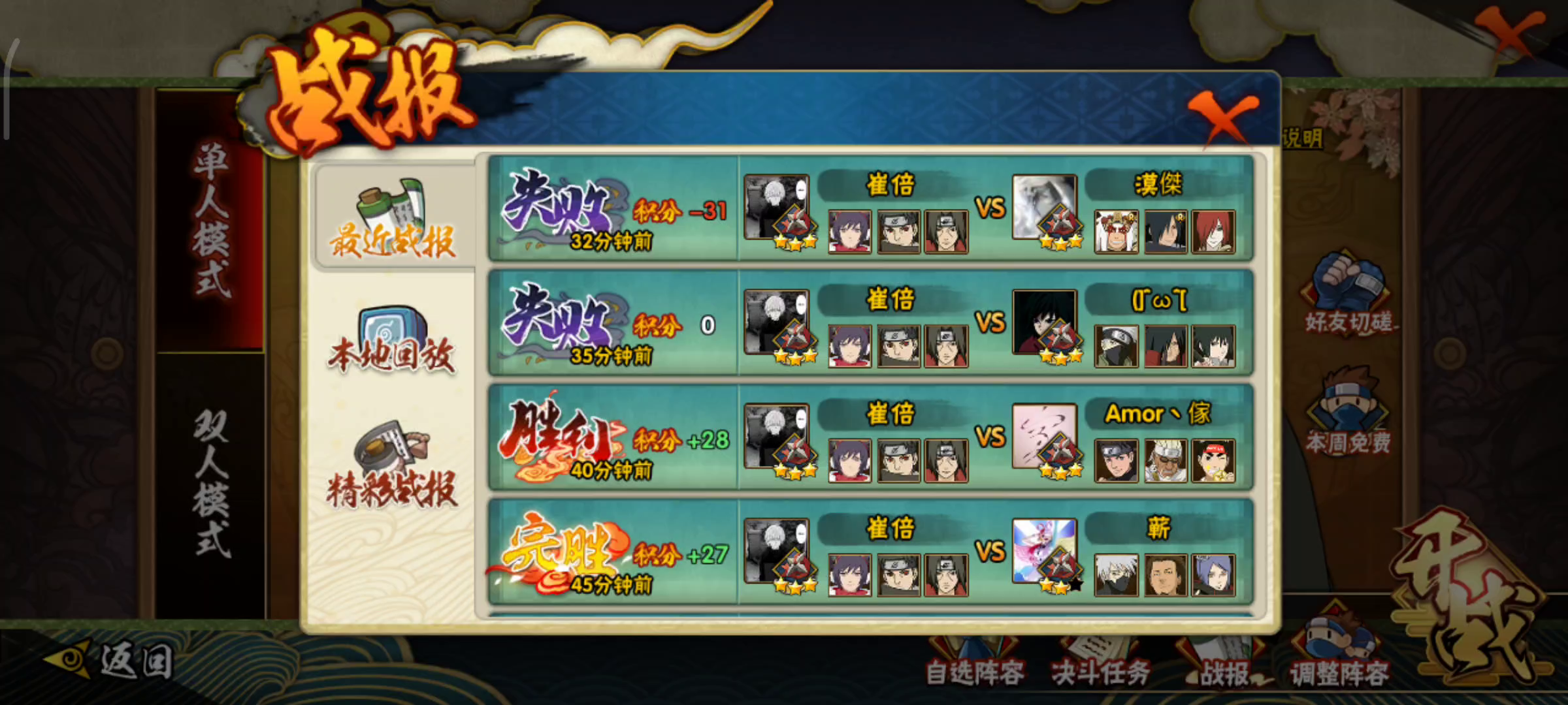 这是我昨天早上录的视频,这个匹配机制。赢两把频道的人的水平和忍者质量就离谱起来了,嗯,我是个新手,没什么忍者,基本上就是些b忍和a忍的体验卡。大概玩了有十天吧,大概就是用的两个a忍,还有一个b忍的阵容,打到了上忍三,让人三之前都非常的正常。也是有输有赢的。到了上忍三就离谱起来了。我个认为我的心态还是算好的。这个情况持续了三天了。本来昨天我是想发的。昨天我也发了,就当时气得很沾了一点点谐音的那个脏话。给我发送失败了。真的贼无语。赢两版就给你匹两三个s忍,我觉得我的发货还算是稳定的。就是那种忍者压制就真的的一点办法都没。玩的非常无奈,有和我一样差不多这会儿入坑或者回归的,兄弟,遇到类似的情况吗?