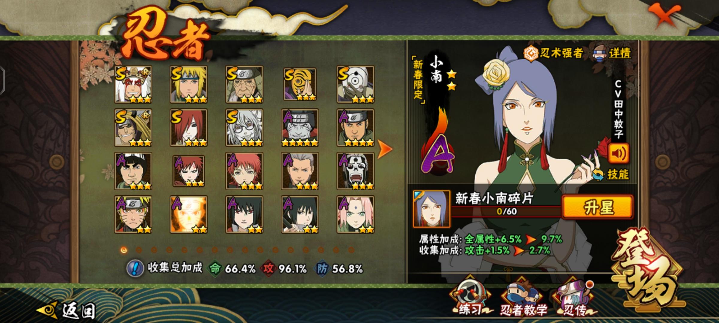 我玩的时间比较久 但玩的少 主要是 作为零氪玩家 忍者比较少 玩的时间相对减少了 希望能减少氪金力度