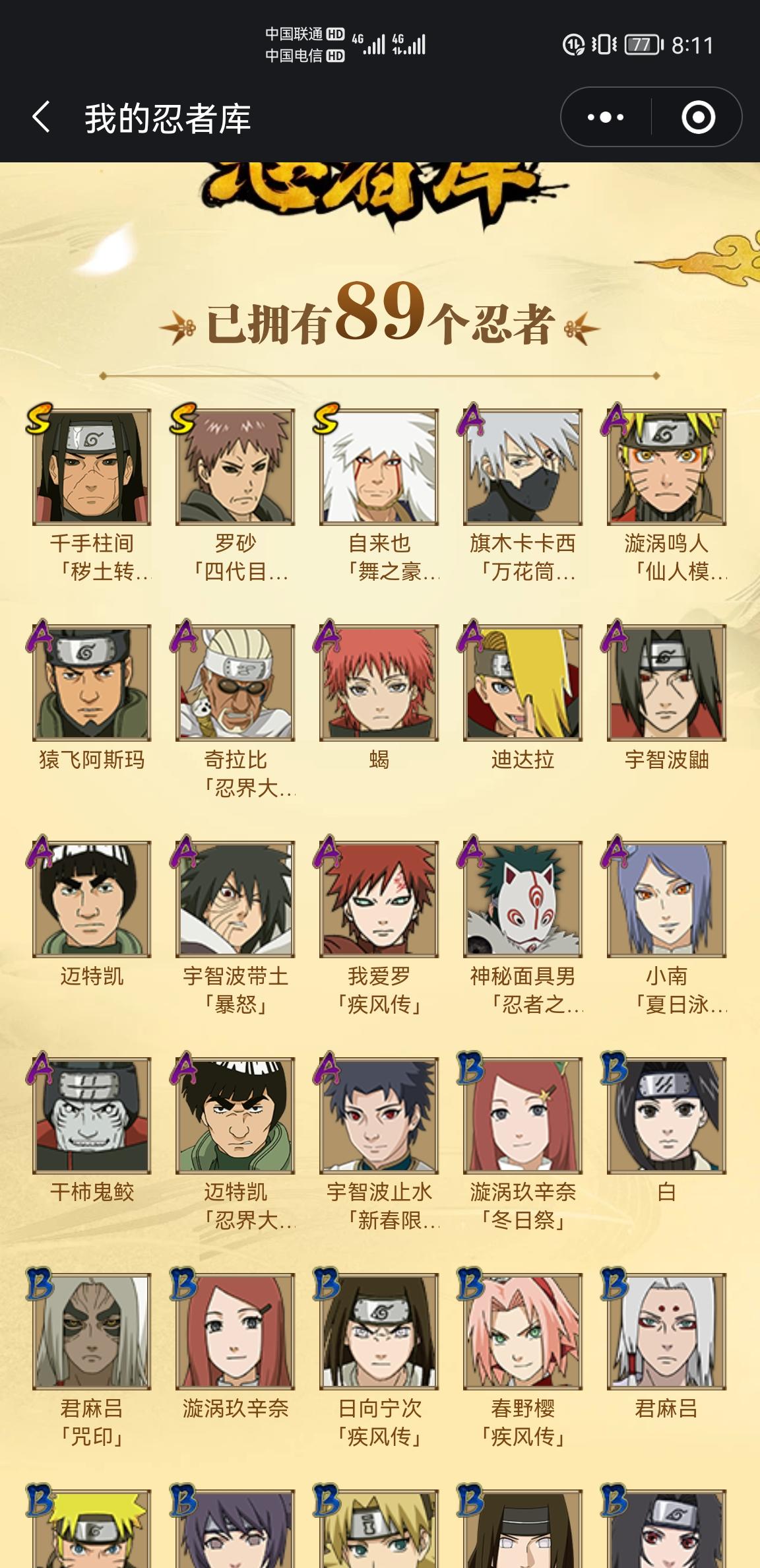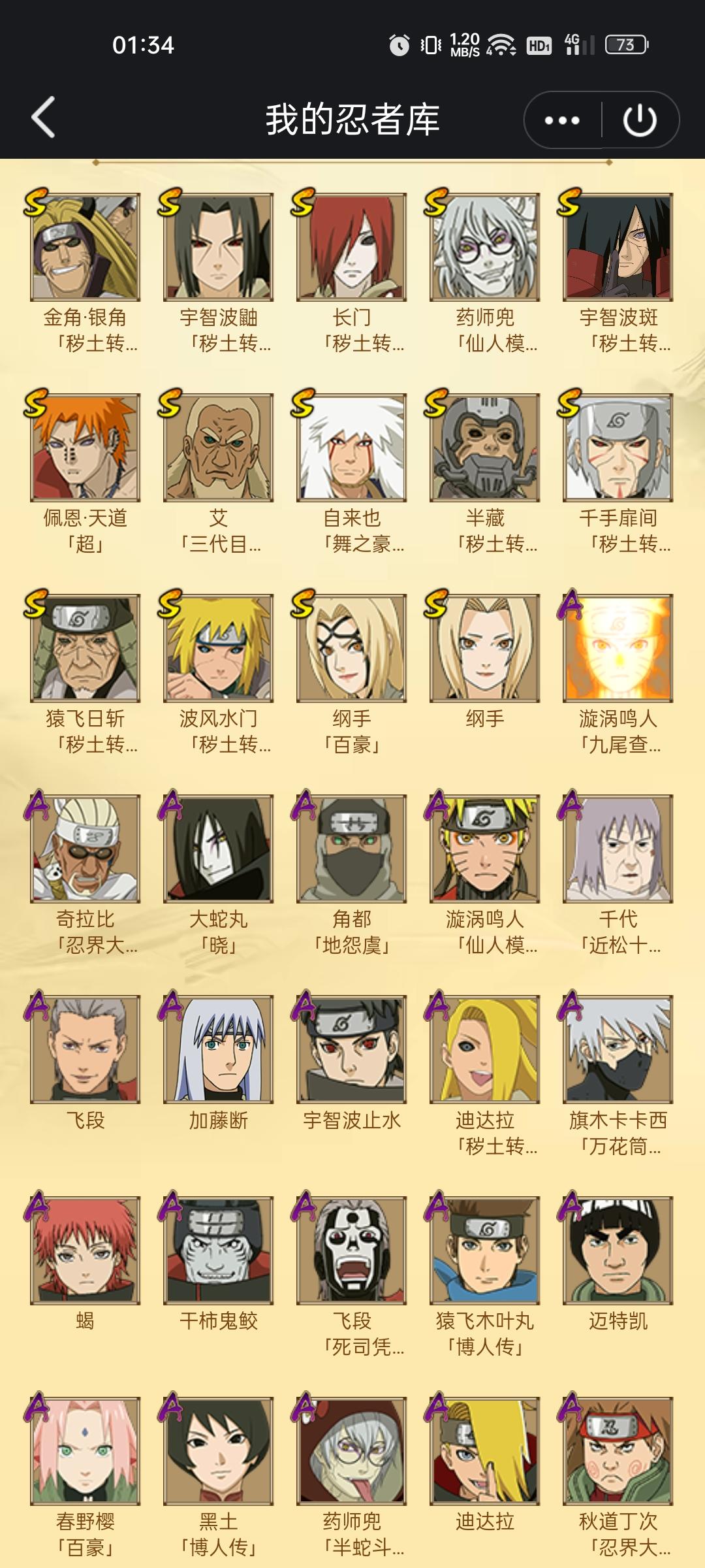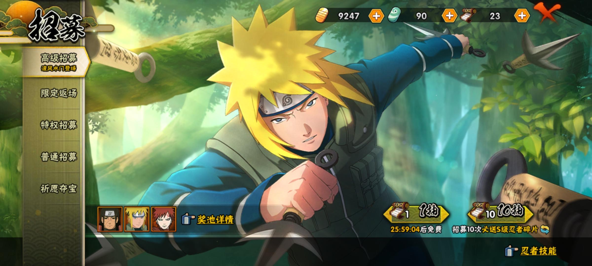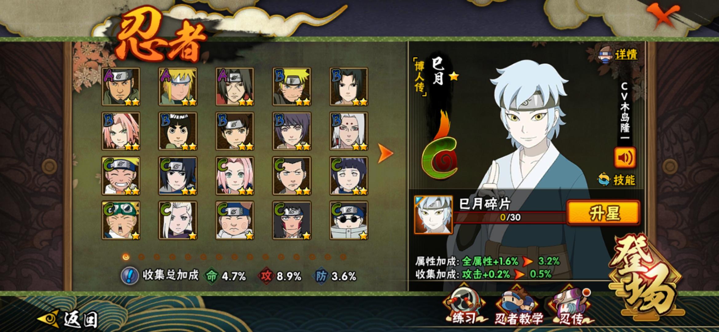 越来越不知道该坚不坚持下去了,秽土3代回坑,一直玩到现在,高招忍者一个没落下(青年水门除外),金币越来越难攒了,感觉金币节奏已经断了,现在4000金币两个卷子,刚把秽土柱间招募不久,9月9就出破面带土,挺喜欢带土这个S忍的,也想弄到手,但是又不氪金,金币活动也不多,每天都玩,日常任务和周胜段位赛,氪金忍者越来越强,平民忍者一直削弱,一直没有氪金通灵,段位赛每个月打到影3就不敢打了,几乎每一把都有氪金忍者和熊猫二尾,拿的出手的就须佐佐助和白面具,佐助还经常上ban位,我的ban位就是天道超,新春止水,暴怒带土和须佐鼬或者半藏,无,青年水门。组织也没几个活人,前十组织都是满员,现在战力750w,真的在考虑要不要弄到破面带土然后退游