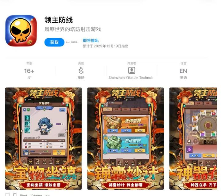 亲爱的各位主公:《领主防线》iOS 版本现已正式上架 App Store!前往APP Store,搜索 “领主防线” 或 ,点击“获取”即可预约!#游戏推荐 #新游安利 #游戏资讯 #塔防游戏