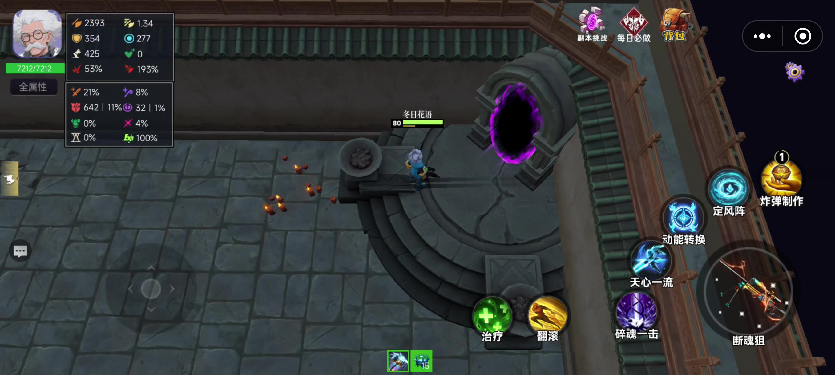 boss的黑白火注意别碰到(碰到白火碰一下黑火能抵消 黑火同理) 站中间位置就行了 芯片可以带三暴击 开局不用贪伤害等他蝙蝠出来打完技能全用第二轮蝙蝠出来直接用炸弹让炸弹自己引爆如果电也出来了就直接引爆不用等