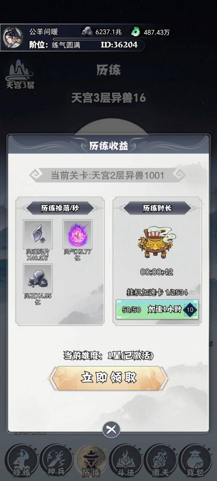 开局先把各个功能该提升的都提升 下面进入正篇 1、功法先提升二阶最后两个档次,只激活和提升这两档。功法副本不用每天去获取收益,时间攒起来,最好是等刷到五万层再去获取。平时没事多打打几天就满了,根据轮回等级开放五万层以后的 2、灵宝优先提升灵石,因为消耗少收益高。等身上的灵石有多了再来提升一键升级。 3、【第一次轮回】的时候要注意【先攒灵气】再进行轮回,不然会出现经验不足,提升不到对应的等级