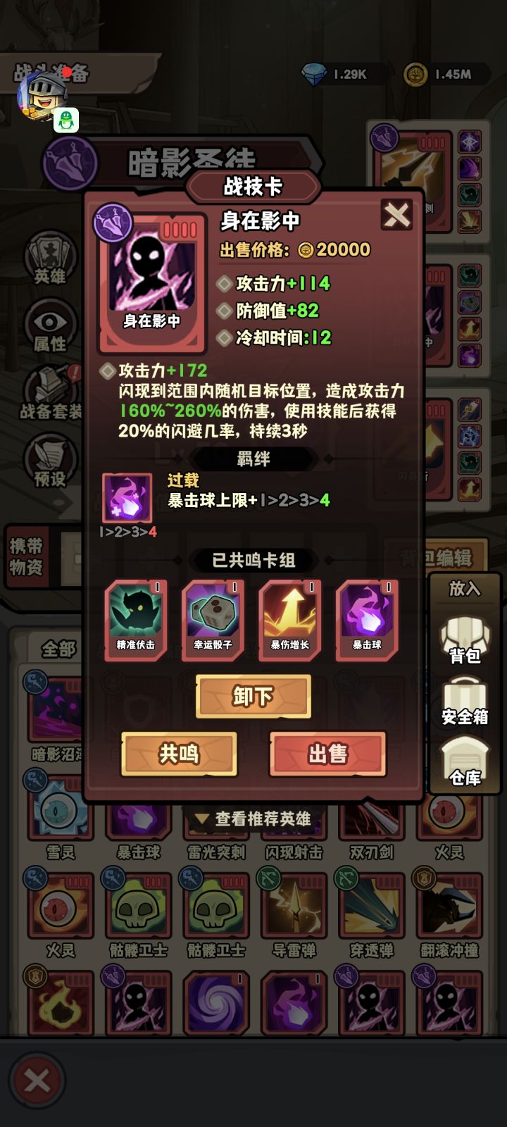 依靠暴击球和暴击增长可以叠加高额暴击率和爆伤,攻击;隐身可以免疫掉大部分攻击;再配上我们的bug卡牌闪身斩能一直触发某些特定的卡牌(平a一下就能触发),我这里选择了隐身加净化增加大幅度提高生存能力,风暴让刺客也不怕团战,加上暴击增长没有上线限,理论上可以叠出高额伤害,pvp和无限影身的恩赐一刀流刺客55开。