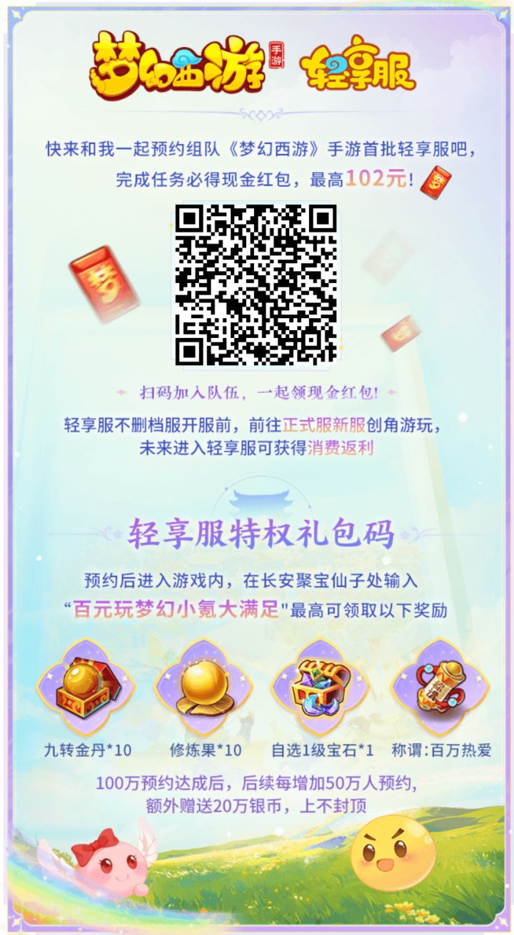 百元玩梦幻,小氪大满足!虎二郎邀你一起玩梦幻西游手游轻享服!在【节日】-【轻享集结】中输入邀请码,参与活动必得领取专属周边、现金等大奖!我的专属邀请码是:CWEBOLDKRX