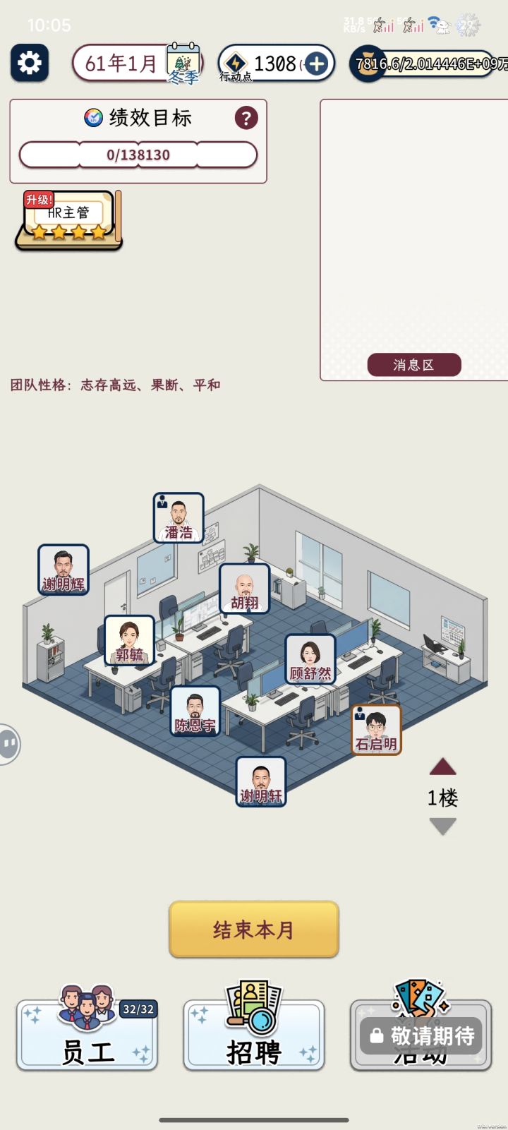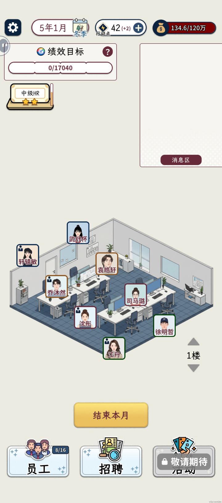 1.调岗员工不合适可以调到其它岗位,职位可以添设副科或科长级别,级别多一点,上升空间多一点。2.员工工资如果可以的话涨工资可不可以我自个控制,再或者我可以添加个小房子什么的,随着我自己的职位上升,房子升级,谈恋爱,生小孩什么的,毕竟咱们建模脸还挺好看的。房子升级谈恋爱生小孩不要太千篇一律,就没意思了。3.如果有跳职可以增加一点跳职行为。玩法可以多一点。