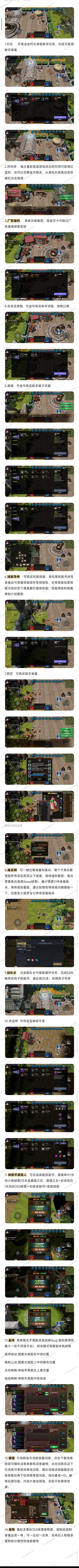 进入游戏开始,先看攻略,先看攻略,新手超级迷糊的游戏现在商城有免费的新人礼包(防氪佬前期大幅度拉开差距),这个新手礼包后面有用,开了装备不要丢接着跟着任务走,找铁匠(在练兵旁边),裁缝,技能书的,找到技能商人,打开背包才能放进去,才能用技能1.等主线任务到了大师甲虫,第一波卡图来了,请去和赵队长谈话拿任务80个怪(中途不能死中途不能死,死了清零,任务还得重新接),任务奖励狗书