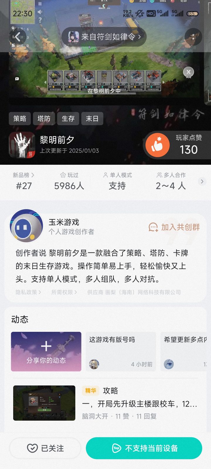 天黑比天亮时间还多???地图小,其实都是在玩防守。建筑你还互相羁绊是吧?升级这个得先升级那个,烦死了。士兵太脆了,医生移动太慢了出去探索一波就天黑,时间太快了,根本不够时间探索第二个。你急成快餐游戏。#黎明前夕