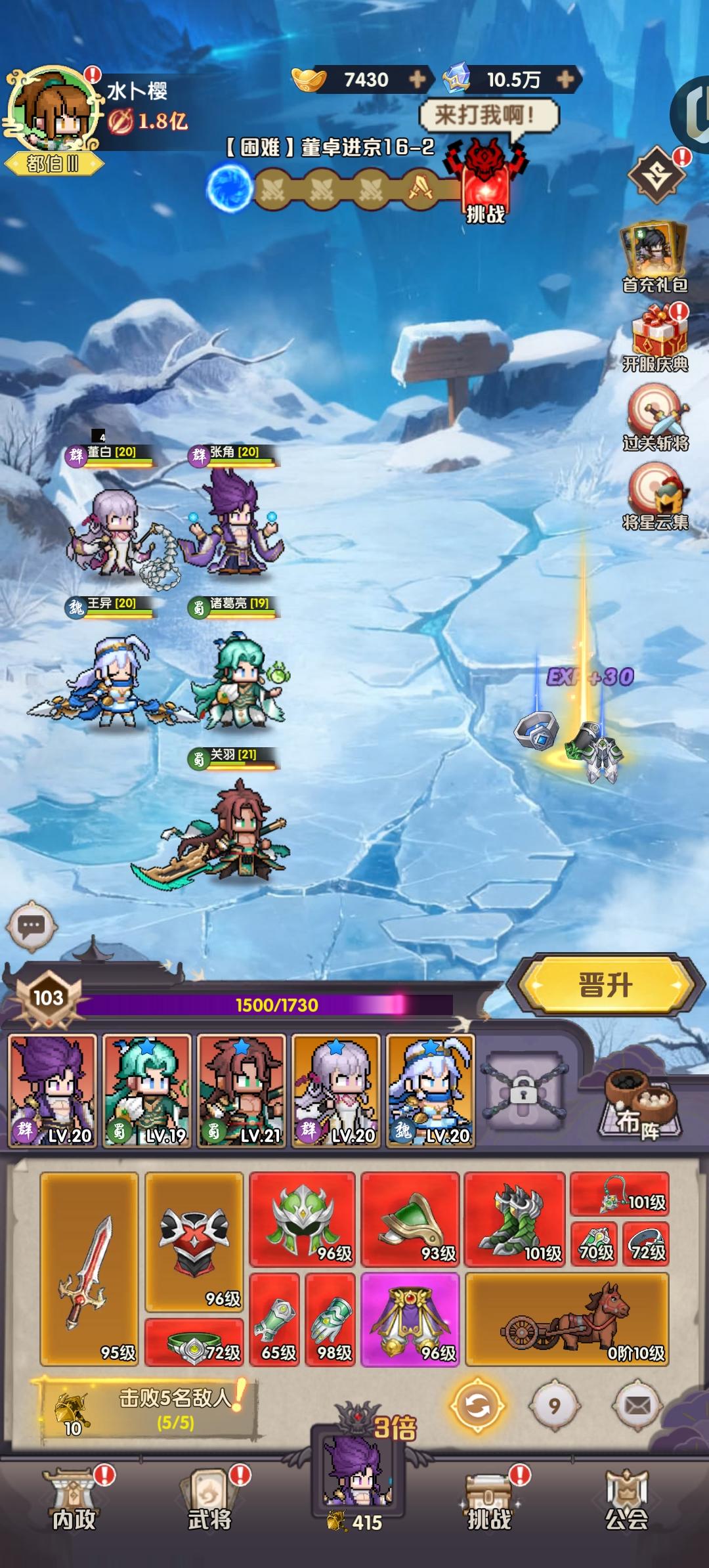 新手开荒简明攻略 有准备入坑的萌新,建议先试玩几天熟悉游戏机制,之后可转至新区重新开始,以便更好规划开局。 第一天核心事项 1. 推图与资源规划- 初期推图:紧跟引导任务推进即可,无需刻意节省“战锤”(武将行动消耗的道具)。 - 经验机制:未使用的经验会自动储存,待等级上限突破后一并发放,不必担心浪费。 - 注意事项:若想高效推图,仍需适度控制战锤使用,避免过早耗尽。可通过兑换码获取初