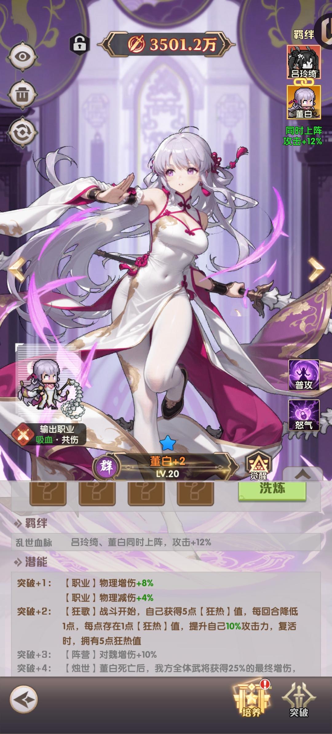 第6区平民新手培养攻略:围绕着将魂商店开始布局,将魂商店有用的就三个周瑜 董白吕布女儿,这3个是能最快五星弄天赋的。能用的开局到40关的,快刷资源打阵容:王异突破6: 先手一次,暴力高 复活一次吕布女儿:突破4能锁血免被秒,突破6是降低男的50怒气,突破8是召唤吕布周瑜突破4 :敌方回血变成减量,燃烧升级真伤。打肉收割机器。 关羽突破2:补刀和连杀小兵工具人。 董白突破2或8:吕布女儿挂件。 最强