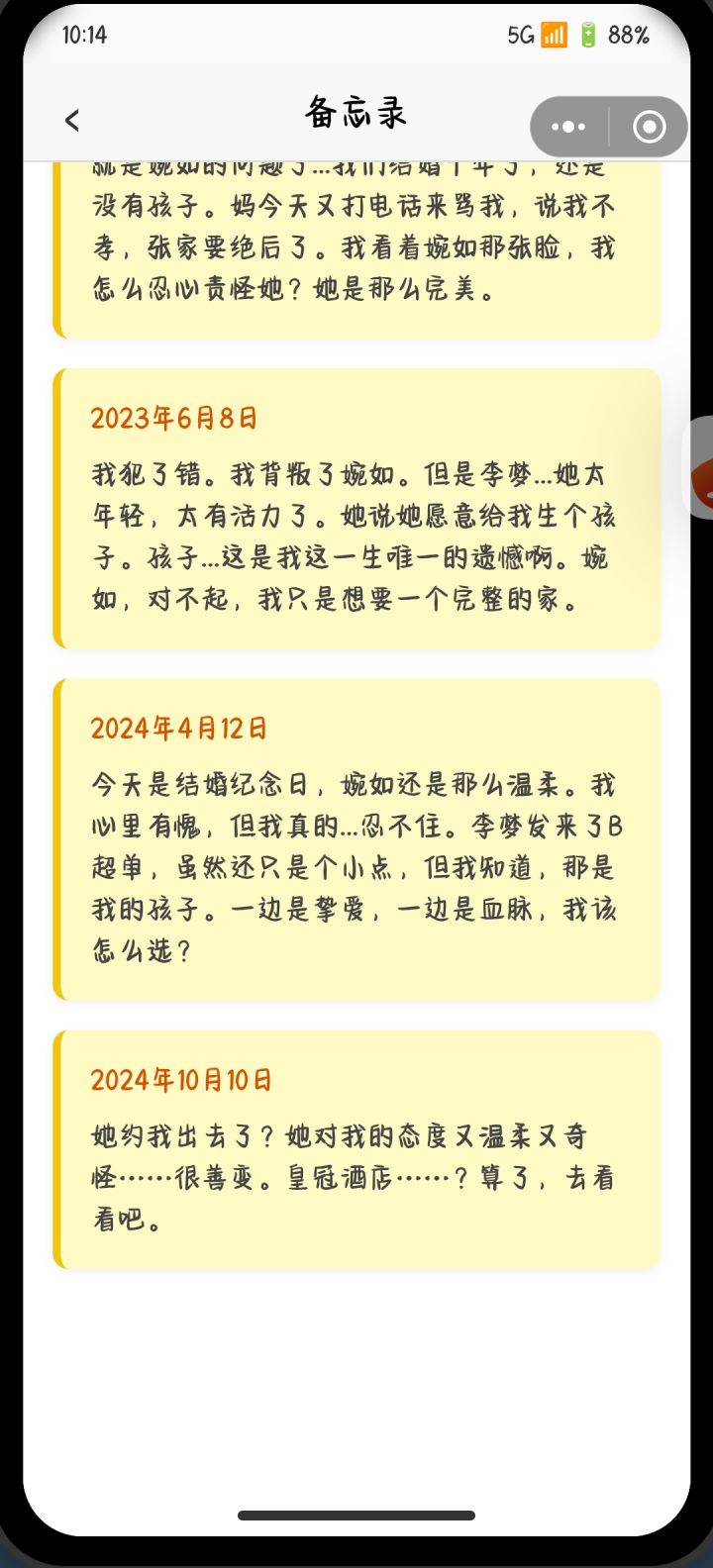 1.死亡发现时间2023年,手机里都是2024年啊而且2.微信界面也有点问题,外面看到的信息里面没有不说,点进去老婆还在那儿说结婚纪念日快到了,纪念日是4月12号,死的时候都10月了……半年没聊天是吧……