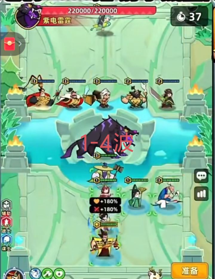 前四波就按图中站位,第五波物理伤害把刘备换廉颇黄忠换袁绍。开局赵云刷到五星刷不到从开,第三波之前刘备虞姬黄忠升满。打完第四波换人。廉颇袁绍尽量升满。不满也没事。我是3级廉颇3级袁绍过的。