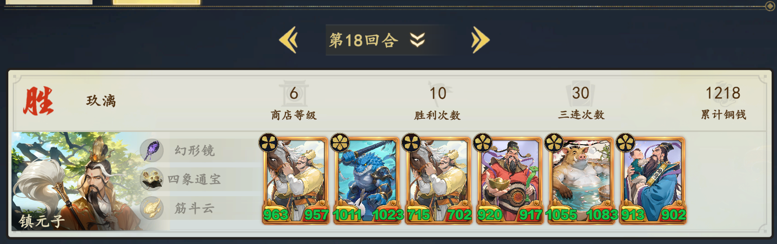 本局为人机局测试。英雄镇元子。思路来源群友的思路:体系牌:御马监小官,小鼍龙,御马监小官,福星,禄星,休假的胖胖具体思路:通过小鼍龙触发御马监小官获得金币通过不停买牌卖牌去触发休假的胖胖效果。经过实测说一下结果:(真的会有人看到这么。你们在期待什么。)18回合1218块钱。身材1000左右。建议:在胖胖数值没有变动前不要玩。作者的感慨:好多钱,好多钱。