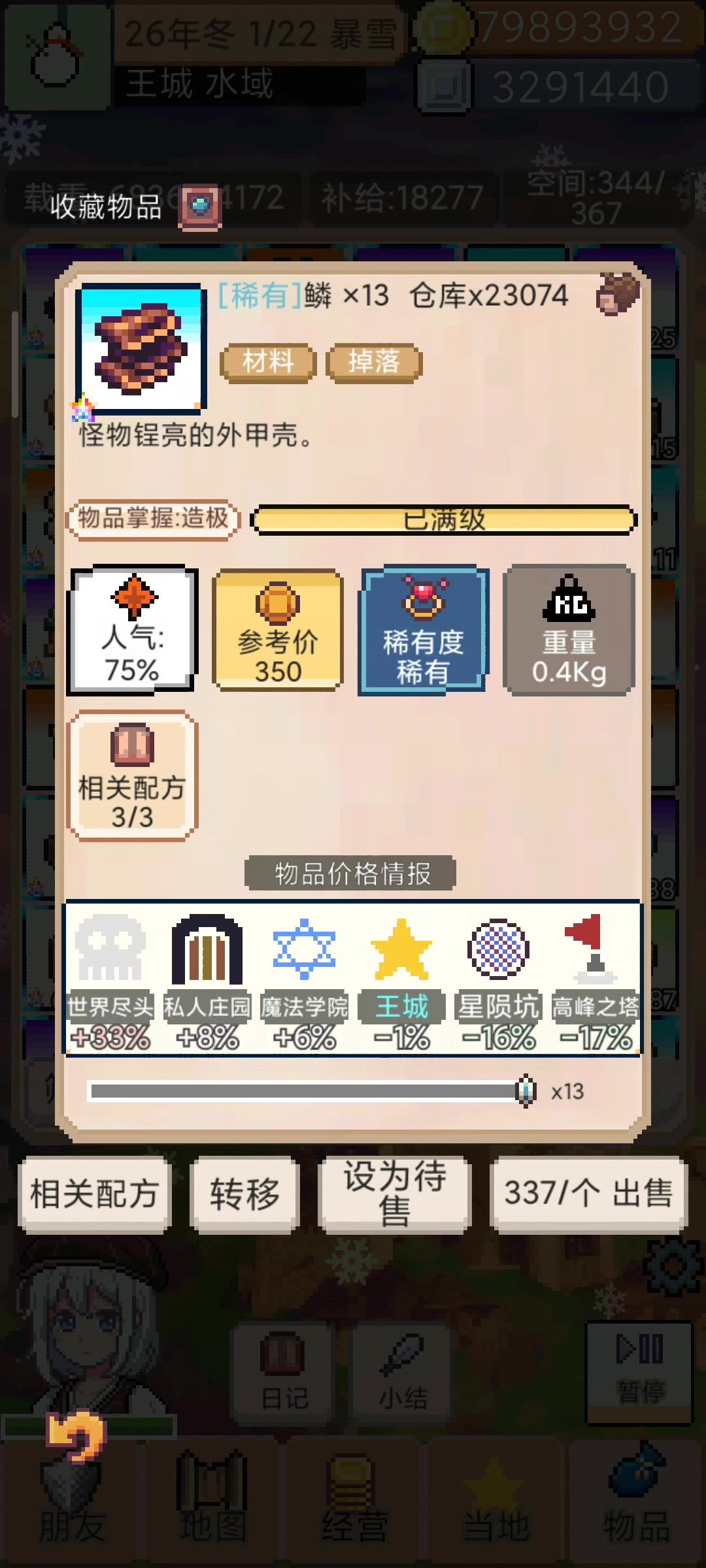 如图,一直在跑商,做了满级锅来买卖补给,解锁了二十多个菜谱后才通过广告给的情报解锁冰雪神殿,现在剩余菜谱数量不够完成神器任务了。