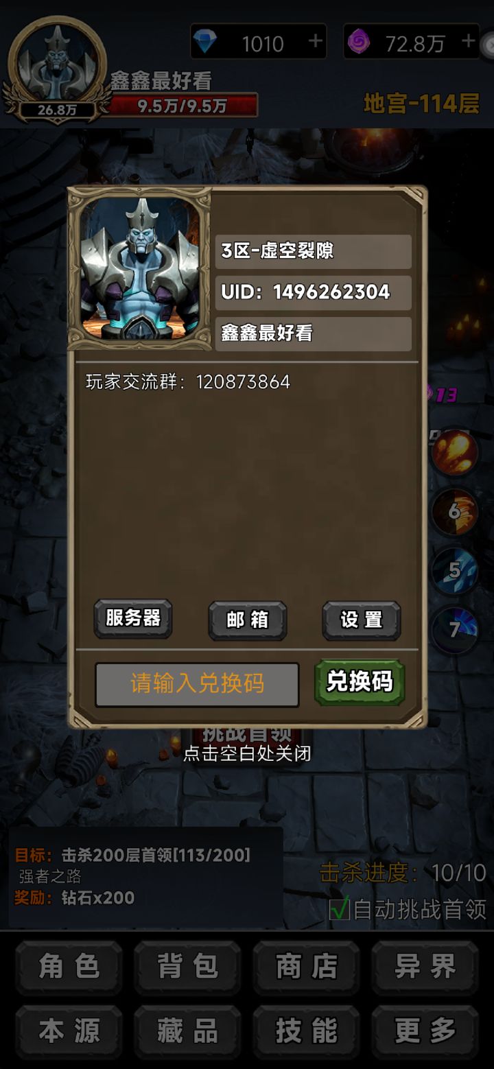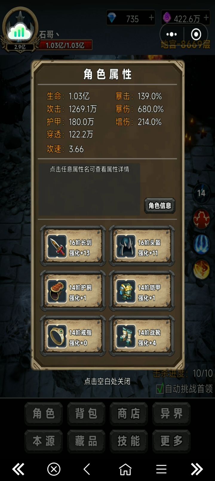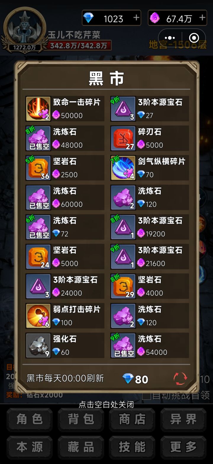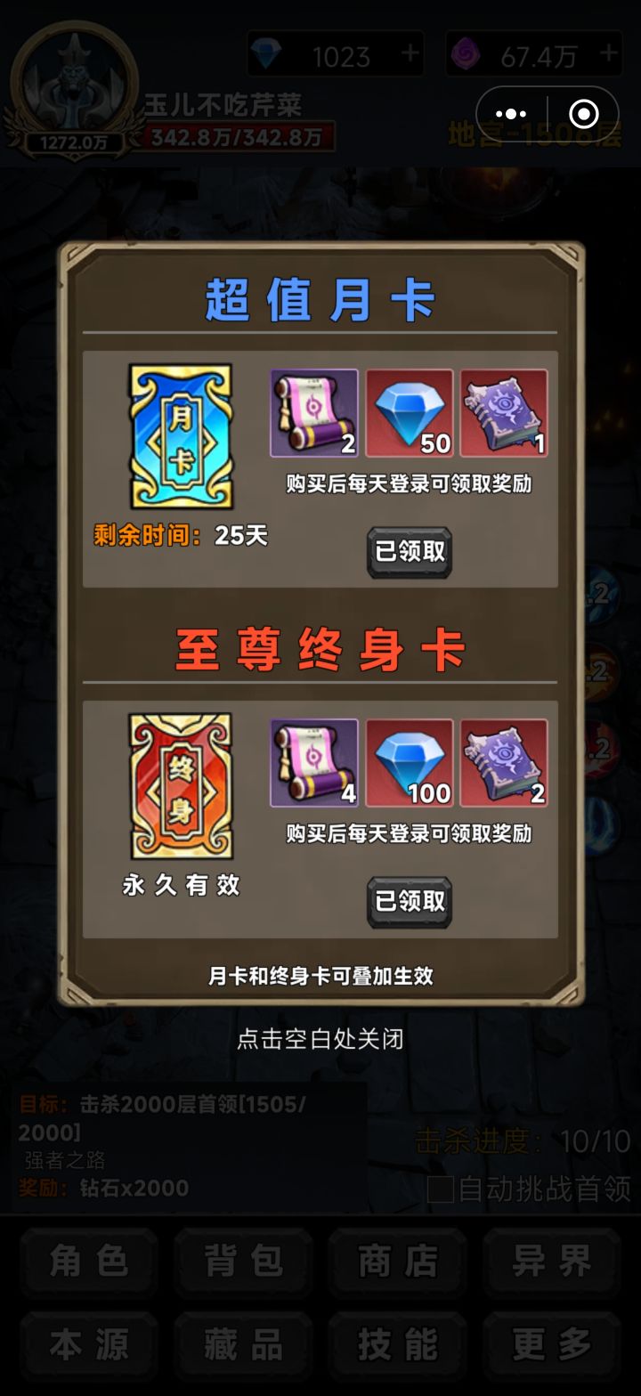 虽然才玩了不到1星期,但看了几位官方推荐的大佬攻略,也来水下,有不对的请大佬们在评论区说下。白嫖党前期进游戏钻石不要乱花,装备主升武器和头盔(刚开始玩不知道,平均升装备不好冲排行榜),基本头两天就能开个月卡,至于永久卡就看能不能忍住不乱花钻石了(我是忍不住的……)。20层后在更多-黑市里刷新折扣道具,异界卷是必拿的,其它道具看自己的需求。技能方面寒冰术是一定要的,前期搭配剑气纵横,月华斩,致命