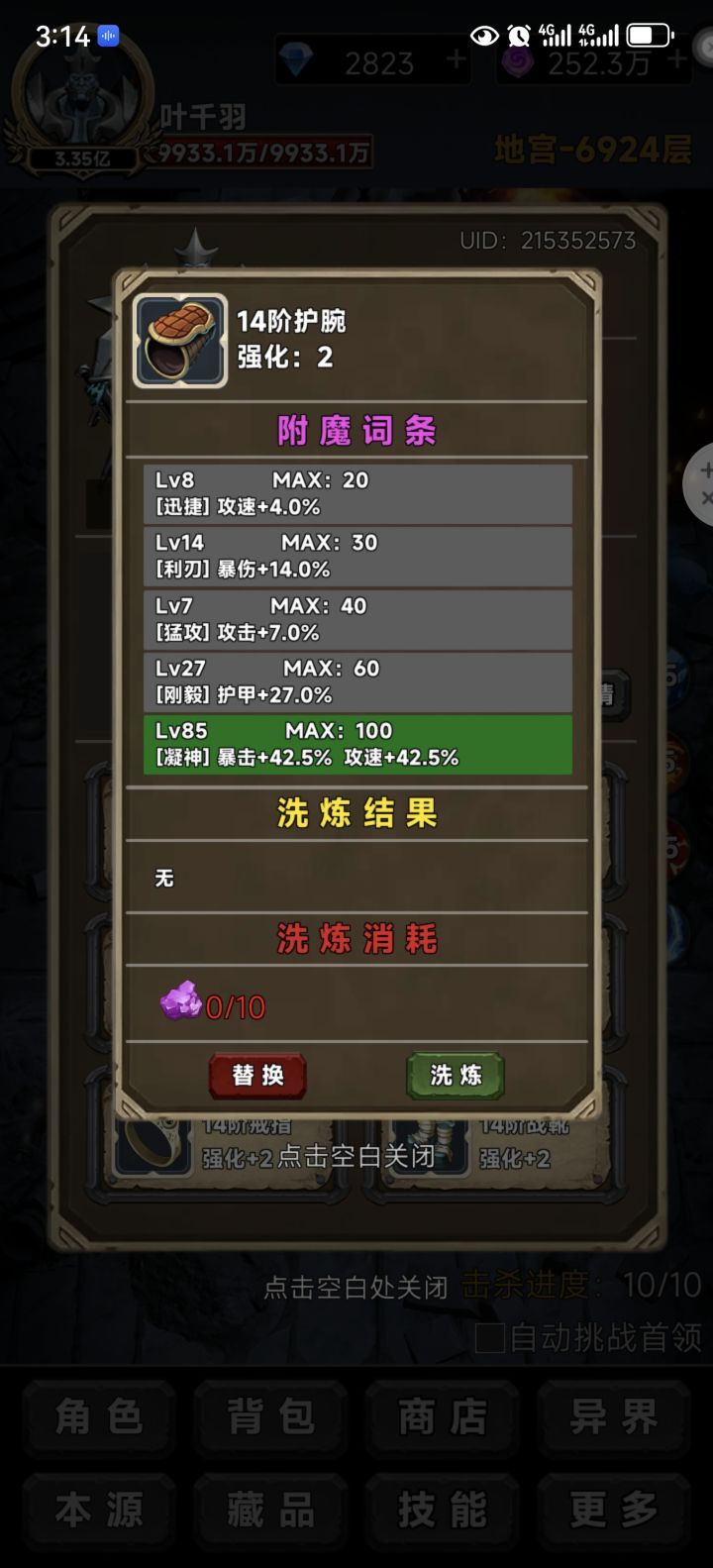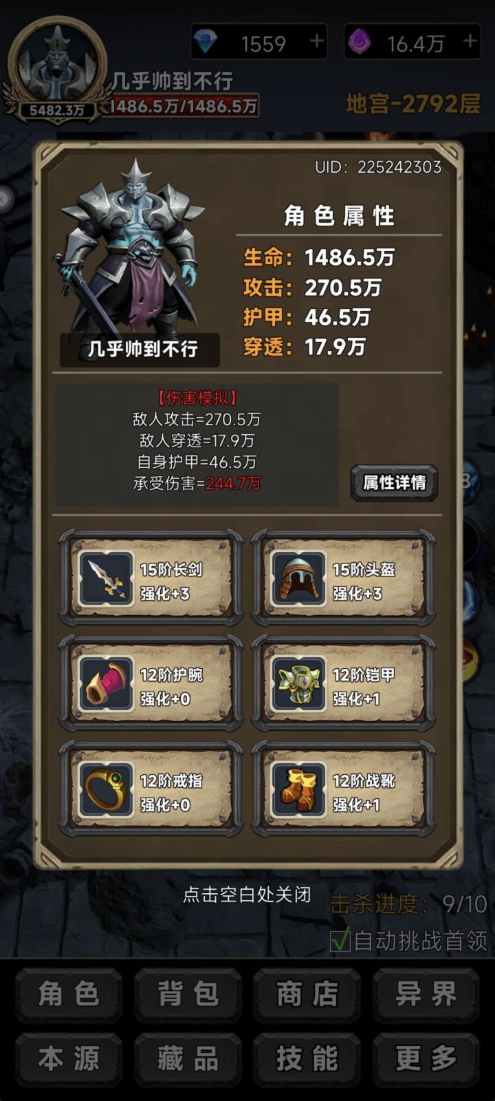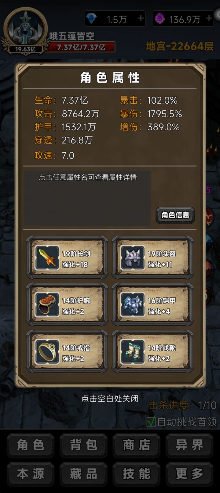 这个游戏装备绝对是核心正确的升阶装备让你遥遥领先进游戏跟主线走,脱离主线以后我们主升武器和帽子(无他数值的魅力),升到13阶段以后可以考虑把衣服和鞋子推到8阶(主要是这时候魔化石有多余了)然后继续继续升武器和帽子升到15阶以后可以考虑其他装备拉到12阶,主要看你魔石数量绝决定。前面大同小异接下来是重点了,武器和帽子升到16阶以后,我们推层数都能发现往往攻击力都够就是缺生命,这时候就改升级我们一