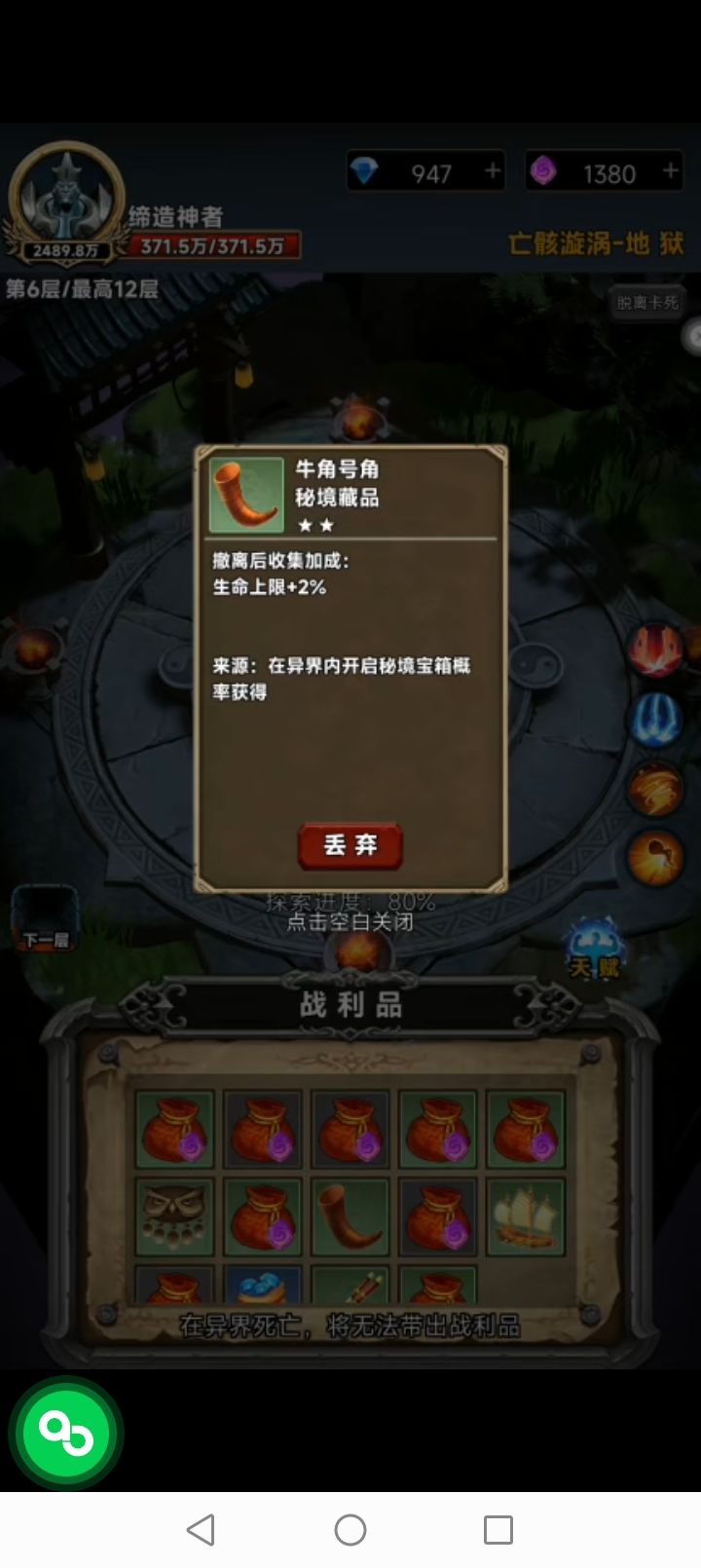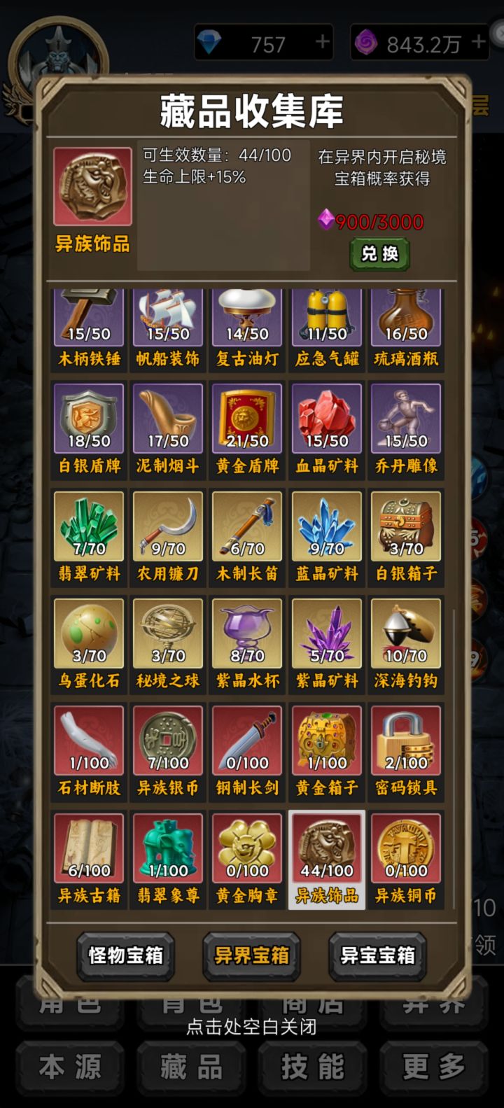 藏品加的战力也是挺多的,有百分比,百分比混固定和固定,藏品满了多的可以换紫晶,紫晶可以换红藏品,尽量先换最后一页的红藏品,有加增伤,缺暴击先换暴击的,不缺暴击可以换攻速或者爆伤红藏品,有人问过带那些满的性价比高,就比如说绿色的,全是百分比的200一个,百分比混固定数值的150一个,固定数值的100一个,所以有多余位的话就可以带满的百分比的,积少成多可以换红藏品,在第一个地图打不了第二个地图可以先把