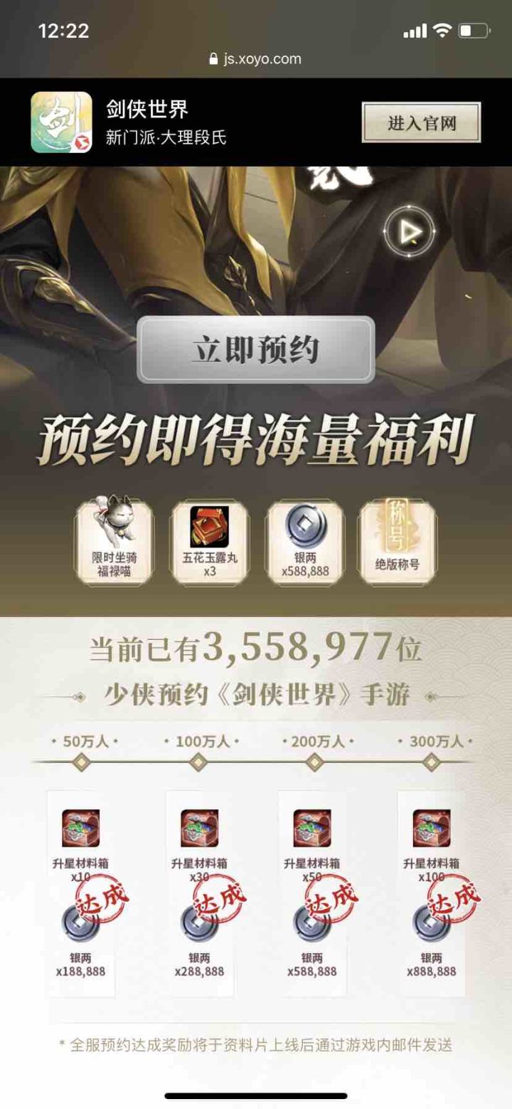 互点!剑侠世界预约活动拿活动礼包