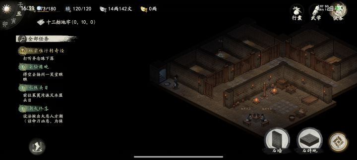 玩了大概四五个小时。现在就有一点让我特别难受,就走路,他点到那个地方,它显示出来两行字但他又不直接走过去,还得你再点一下完全没用啊这。还有就是地图上的这些字也太小了吧,看都看不清。然后地图缩小之后,它显示的字又特别大那些地名。然后就轻功方面啊就隔着一个格子不让你跳过去。目前看他要学三种轻功对应路面水面和墙面然后才能完整的解锁。轻功这个东西,现在只有一个武馆学的地面还没玩到后面。还有就是跟NPC对话