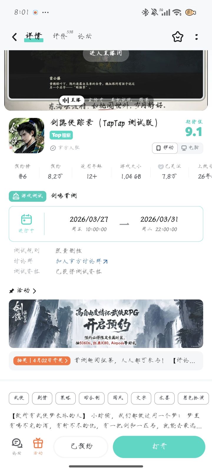 3月27日17点多的时候闪退过一次,发帖前闪了一次。尽快优化吧,反正还是测试服