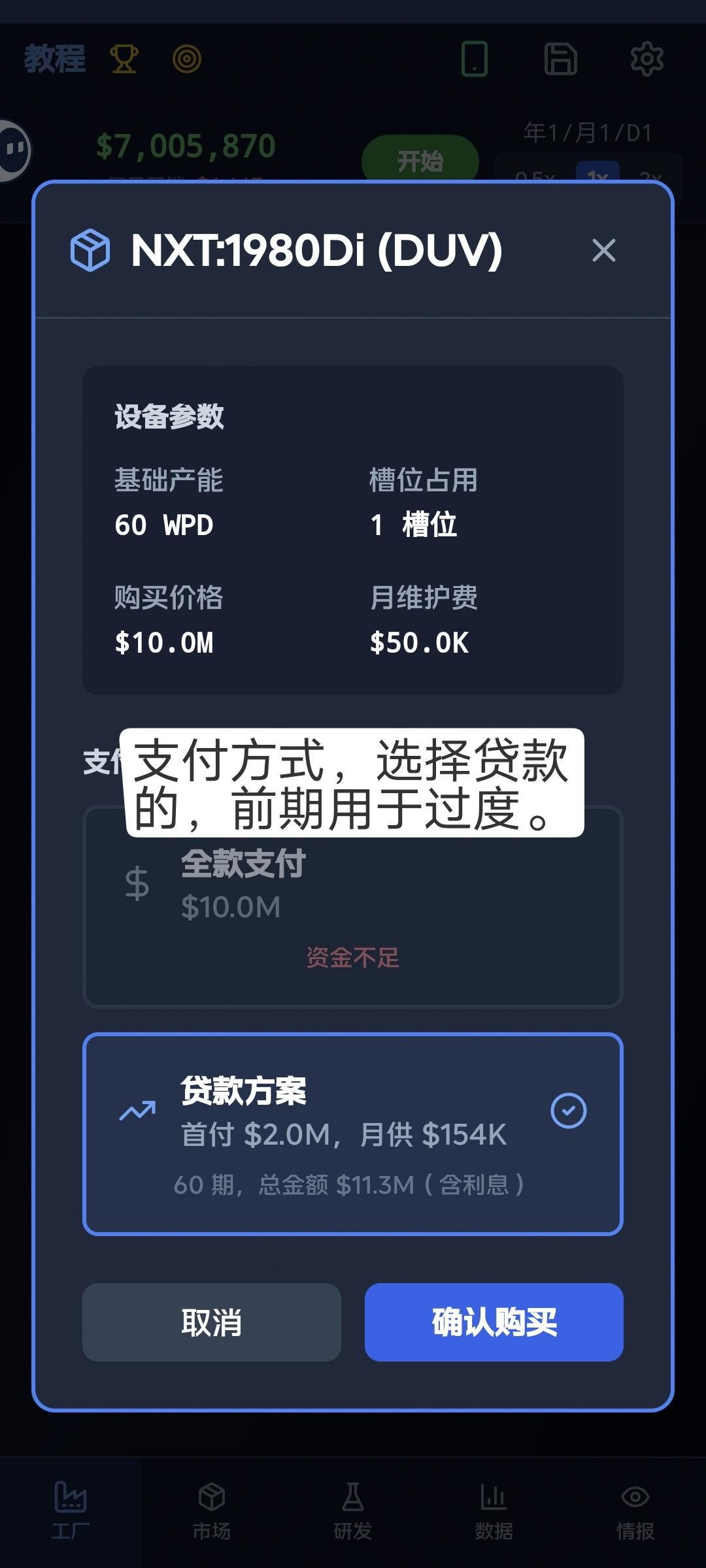 教程只是参考,这里演示的初始资金是7M,大家在选择时尽量多些,容易破产的话,大家注意资金,因为如果分配不好的话,就容易破产,所以大家在前期游玩的时候,尽量省钱,然后呢要预留充足的缓存资金,也就是最低破产线(资金最低要求是2M)如果游玩时低于2M就容易破产,特别是流片的时候。#游戏攻略 #发现好游戏