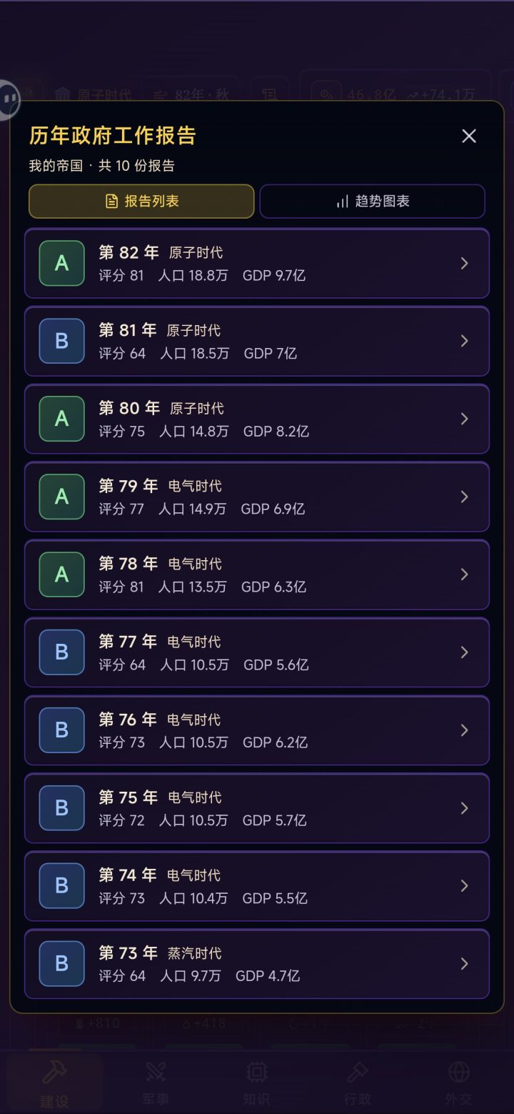 这个游戏的货币并没有存储上线,那么也就失去了囤积货币的意义,因为你根本花不完。除了供养军队与补贴阶层以外,其他的对货币的消耗,都是一次性的。因此,可以得出的结论是货币本身无用,只要国库收入是正的,就不需要关心如何增加货币收入。随着国内阶层的富裕程度增高,各阶层对物资的消耗也随之增加,国民越富有,物资就越匮乏,我们可以得出一个结论。在同等物资的情况下,1单位富裕的国民=10单位小康的国民,他们对物
