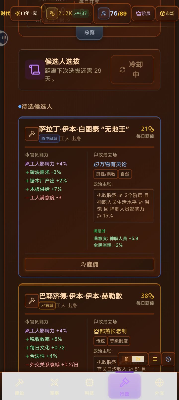 界面按钮怎么没有反应,还有为什么官员雇佣不了
