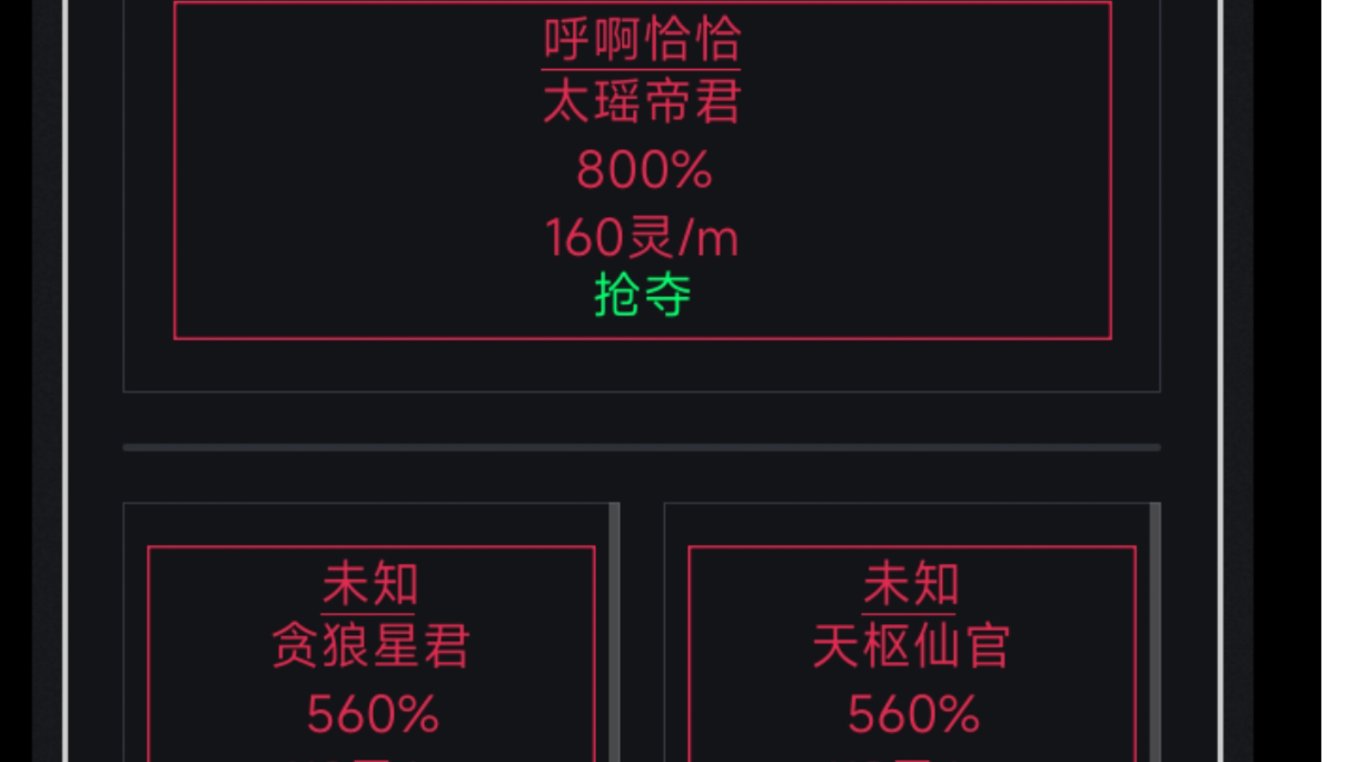 仙界中的仙官和仙君其所获得的加成为本源加成本源加成数值为下图中的百分比,百分比下方为每分钟所获得的灵石数量。仙君仙官还有帝君的区别:帝君:需要你的战力高于此帝君的战力才可占领,占领后可以获得仙官的10%的灵石收益,有通过仙官的申请和撤掉仙官的权限仙君:需要自身战力高于你所需要的位置的战力就能占领,无需抽取10%的灵石收益仙官:无战力要求,需要帝君同意申请后才可占领,并且在领取灵石时需要向