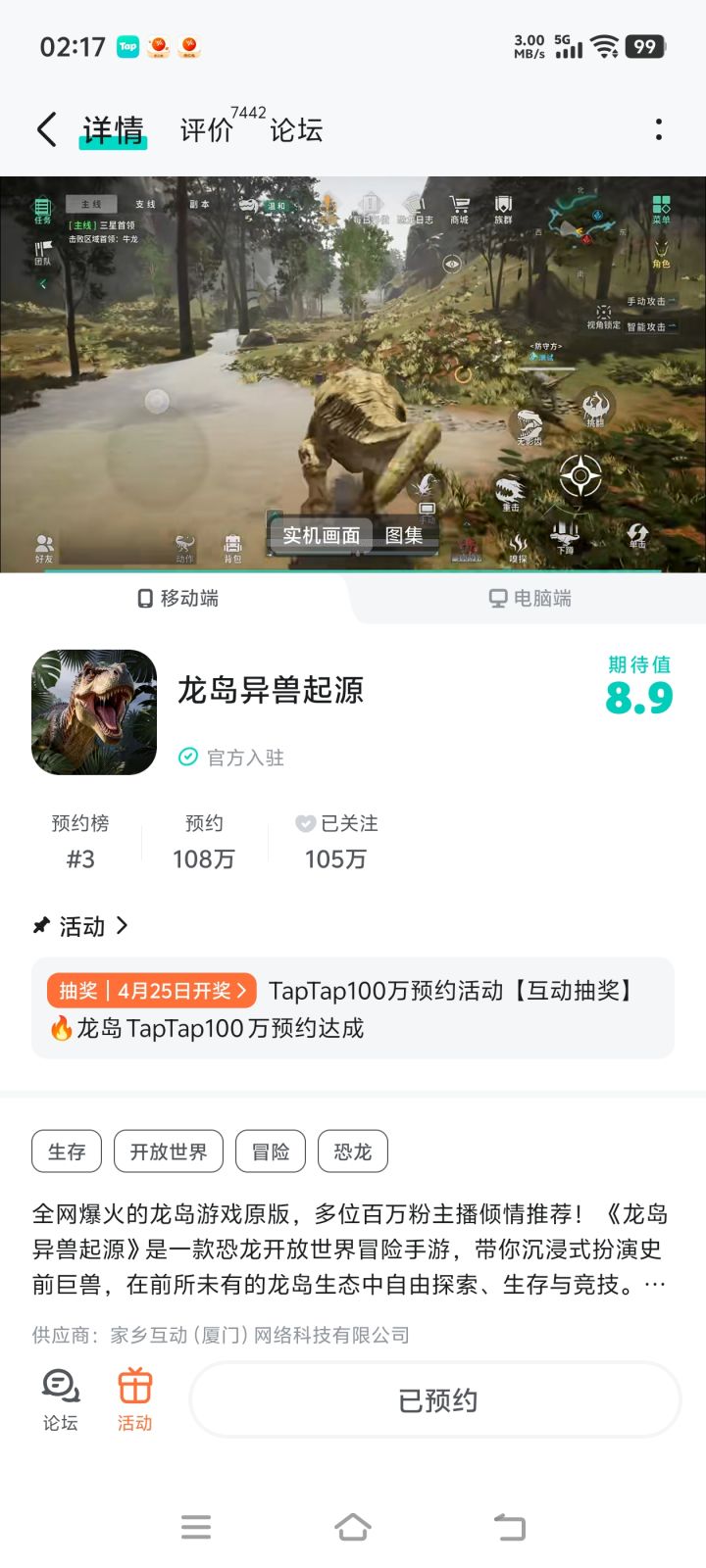 我必须反馈,我预约了好久,恐龙岛这上线的事情连一分毛都没通知。 @游戏懂哥 #噗噜噜实验室