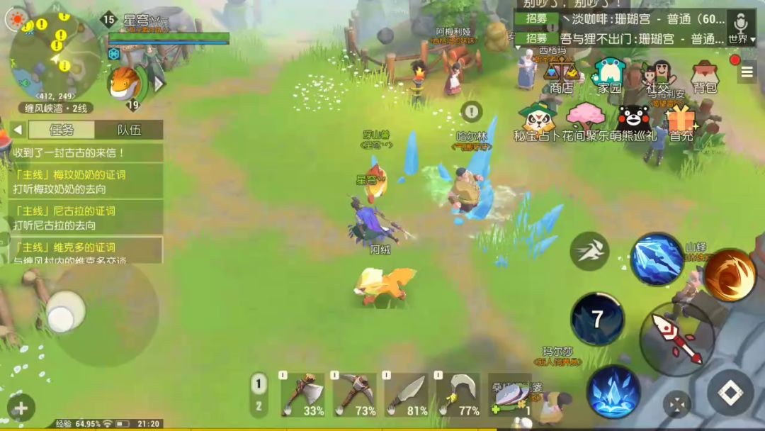 攻略(萌新向,大佬可以忽略了)By:尔虞先秀一下自己,毕竟也只有在内测才能上榜了(2333333333)一、游戏类型内测3天,感觉这个游戏就是一个我的世界和楚留香的结合版。既然是结合版,也可以分为两类玩家,一类战斗系,一类生活系。战斗系玩家毋庸置疑,以提升自己战力为主,PVE和PVP对于他们来说就是这游戏的主要玩法。生活系玩家总结起来很简单,就是采采采、建建建。这类玩家以PVX为主,提