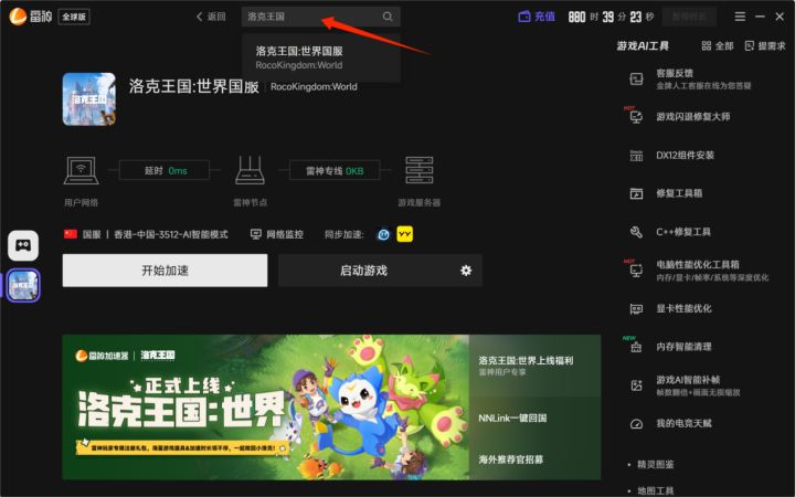 满心期待《洛克王国世界》3D 魔法冒险,海外玩家却被地区限制、跨境网络卡顿拦住脚步 —— 下载失败、注册掉线,童年情怀难续?别愁!雷神海外回国加速器一键破解痛点,顺畅打通国服下载、注册通道,让你同步解锁冒险,重拾精灵相伴的快乐~ 下载:①打开雷神全球版搜索《洛克王国世界》 ②点击进入《洛克王国世界》游戏加速页面,单击“开始加速” ③点击打开洛克王国世界官网→ ④打开页面后点击右上角【登录】