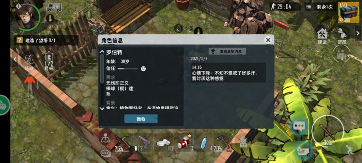 真的是希望不要搞我们的玩家心态,我狂吃狂拉,好不容易变臭。得亏他离房子近,然后做完背包回来发现又热了,又不跟我走了,我服了。 无伤即正义是什么意思,我救完那个人回到这儿就发现他剩一半儿血了,然后他还要个棒球棒,但是我没解锁过,怎么给你?