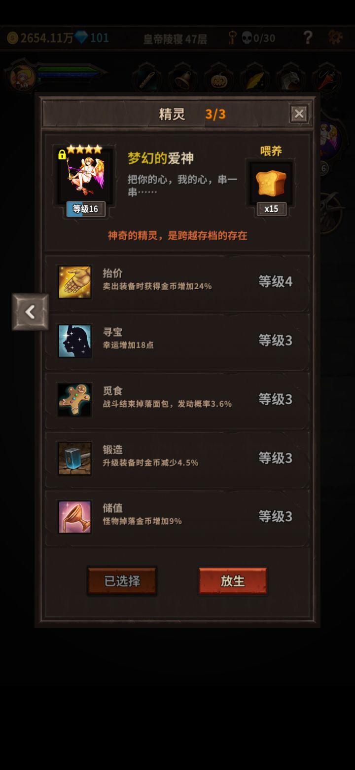 精灵升级真慢,后面发现一个快点的办法,只上阵火女,守护兽都不需要带,挂机技能全火雨,带把魔力源泉法杖回蓝。刷47层一秒一批怪,魔法攻击又不担心反弹,有南瓜灯药水就拿,没有就买,没钻石了就去梦境刷刷,小米手机能备份就是爽,等两个精灵都满级了,再慢慢过一周目,应该没难度,赏金一枪都能打上百万的伤害了😁