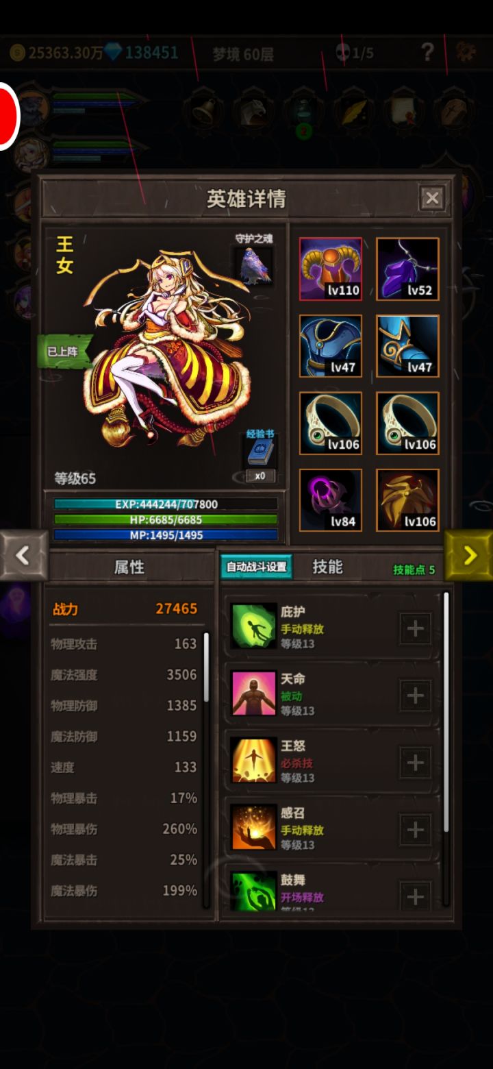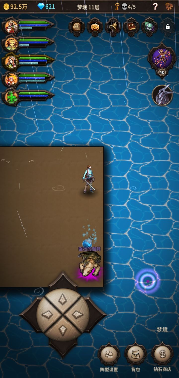 大佬们,这游戏我刚玩没搞懂,打到35层,被打死了,提示我是否花费三百钻石复活,我没钻石,只能重新来过,请问下,我看攻略说21层可以打梦境,但是我开启了之后,怎么点不了梦境?