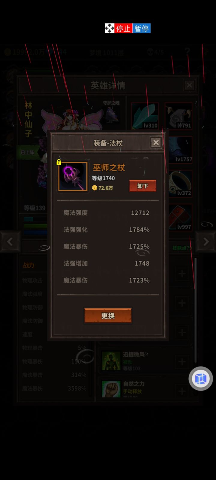 过一周目时狂战的属性,满血撸死魔剑,护符龙血琥珀。 1. 低配过需要龙血狂战丝血不带吸血装,带满爆伤,满封魔盗贼开大,前排带驱魔王女,魔剑血量控到50开大打死,前面有扣血护符也可以用了。这游戏有备份会简单很多,没备份的手机可以下载个虚拟大师,自带root的,进去导入钛备份,恢复的时候需要退出游戏,卡铃铛bug前可以先备份,免得失误。 2. 很多攻略都是很久之前的了,刷钻还是去梦境比较好,别惦记36,47层了,梦境有几率出100钻,虽然几率很低。梦境21层刷钻也是不错的。 3. 复活石碑必带。钻石英雄购买顺序还是建议狂战王女排前面,再考虑赏金,因为50层开始小怪会打后排,需要单上狂战一路杀过去,这时候最好有龙血。