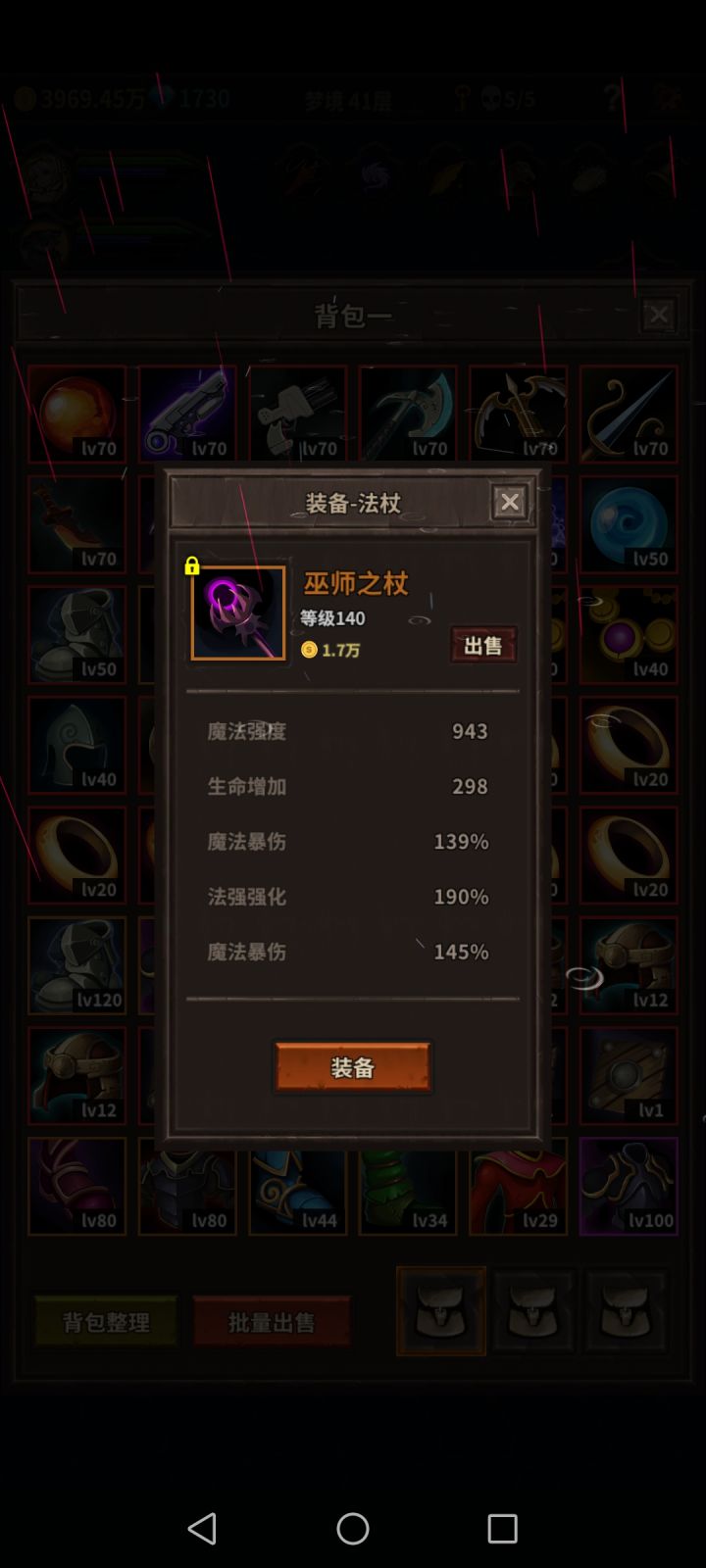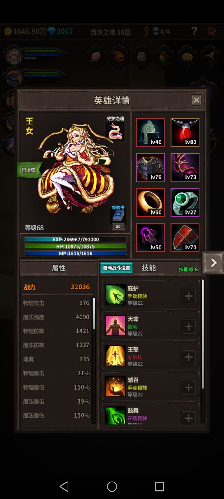 一周目过了好几次也没过去,上回用的狂战4000物攻也过不去61,又卡在了魔剑这里,这回我一直呆在36层好几天了,你们看看还有什么需要改进的吗,都用什么装备好哇。