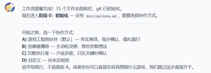 使用方式:把下面的文字直接复制给嗒啦啦也行,新建一个md文档上传也行。新项目部署的话直接部署就行。老项目推荐新开一个会话窗口来部署。工作原理:就是把要创建文件和流程怎么搞写了下来,让嗒啦啦自己学习自己部署。# 游戏开发工作流部署包 v5.5> **一份文件,完整部署。** 支持上传文件或直接粘贴文本,AI 自动识别并执行。---## 使用方法### 方式 A:上传文件(推荐)1. 把