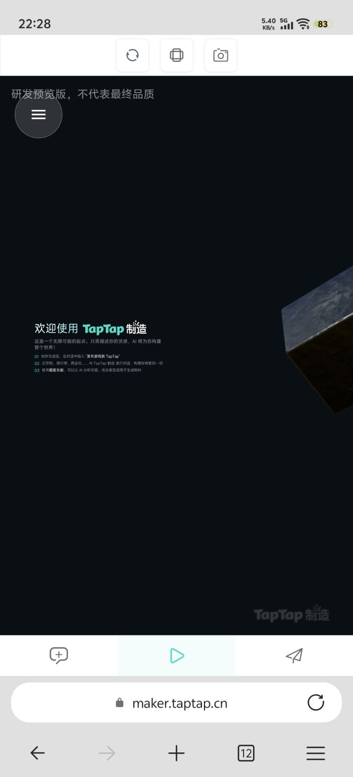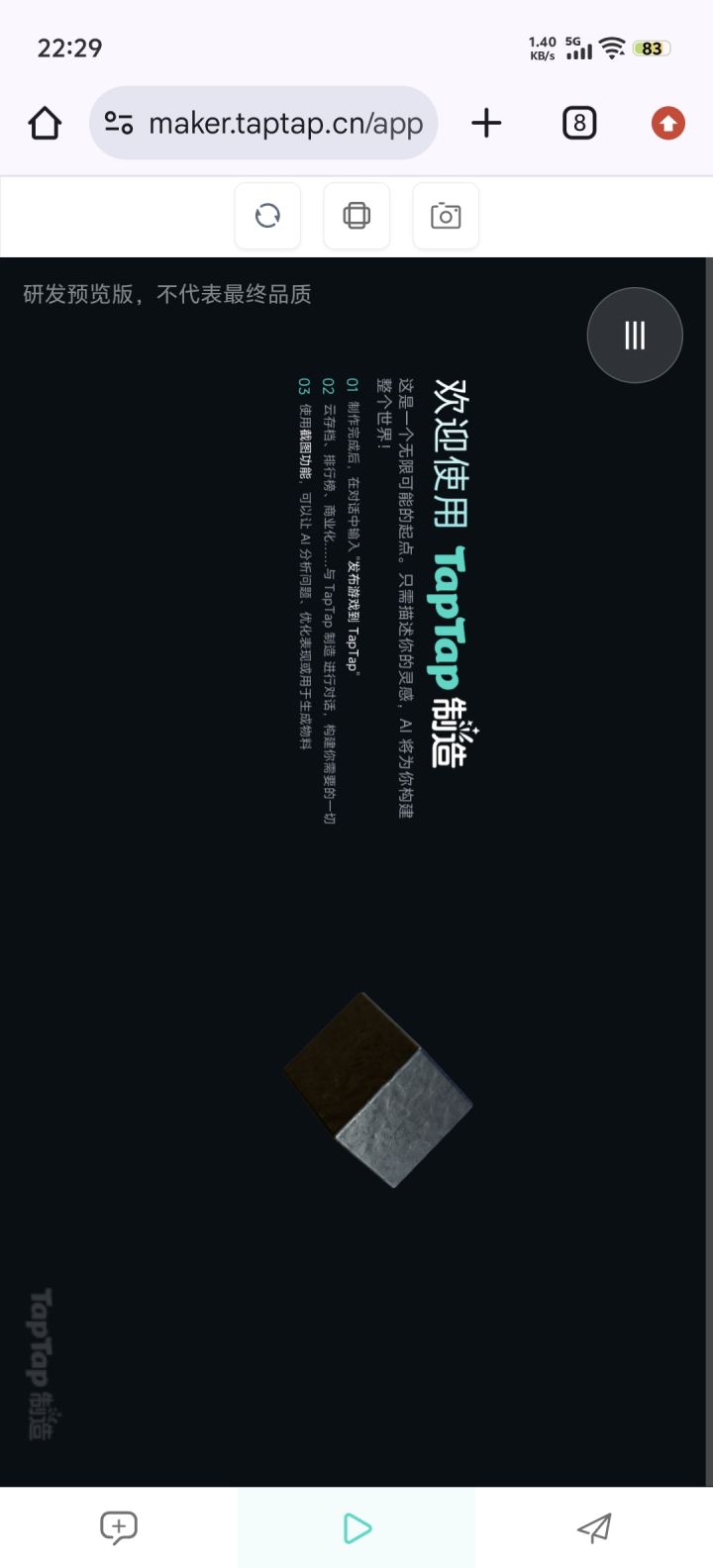 正式发布前,开发者能够用taptap打开测试链接,测试一下,手机版很多时候跟电脑测试差别很大。手机浏览器的测试跟taptap差别也很大。