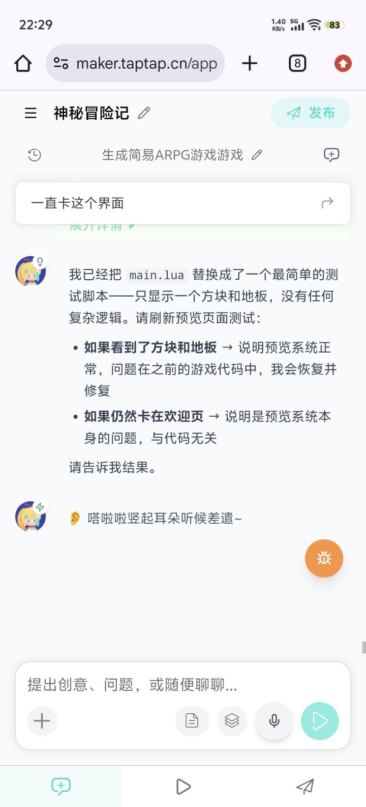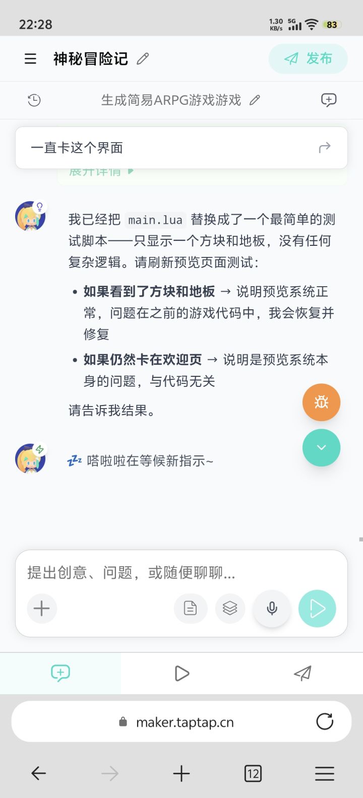 maker的开发者,你们好我偶然机会获得到了内测资格,最近经过研究,投入了较大的精力在maker上开发了一个模拟游戏《实况大师联赛模拟器》也经过了坛友很多建议帮助,在不断完善游戏想着先发布出来测试版供大家看看效果但是但是在web端,ai开发,测试demo很好的,这个链接,https://maker.taptap.cn/shares/lgx767 在电脑上体验都是完好的申请发布、审核